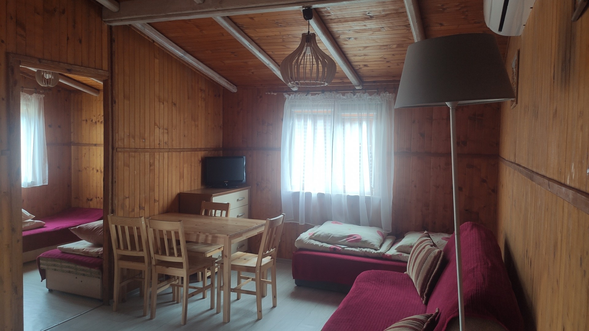 W naszej ofercie noclegowej oprócz pokoi posiadamy również 5 klimatyzowanych domków letniskowych.