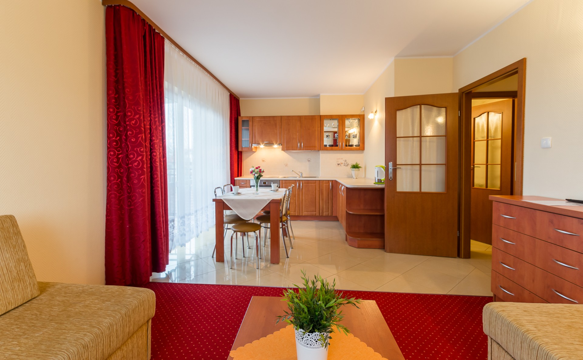 - Apartamenty dwupokojowe z własnymi aneksami kuchennymi.