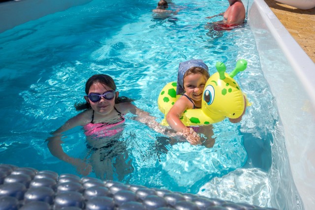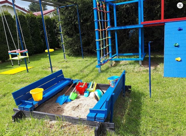 Cały teren ośrodka jest ogrodzony i bezpieczny, a klucze do furtki wejściowej oraz automatycznej bramy wyjazdowej posiadają tylko nasi goście! To sprawia, że bawiące się na ośrodku dzieci nie mają możliwości opuszczenia go bez wiedzy rodziców. Dodatkowo z większości tarasów możecie Państwo obserwować bezpośrednio swoje pociechy bawiące się na naszym placu zabaw , oraz basenie grillując i miło spędzając czas. Basen podgrzewany jest od 1 czerwca do końca sierpnia.