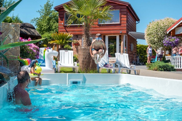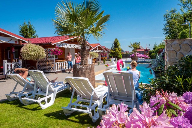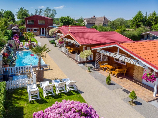 Domki Aqua Garden - idealne miejsce na rodzinny wypoczynek. Basen z podgrzewaną wodą, plac zabaw, rowery, piękny ogród!