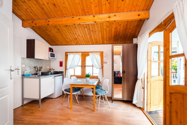 domek Patio 220 zł/doba, domek 4 osobowy 250 zł/doba, domek 5 osobowy 300 zł/doba