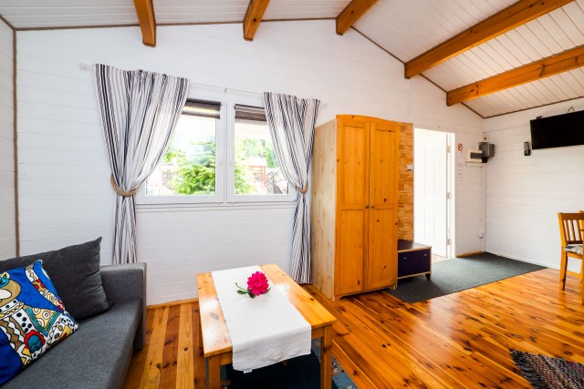 w każdym domku znajduje się pościel, TV-LCD, sejf i bezpłatny Internet Wi-Fi