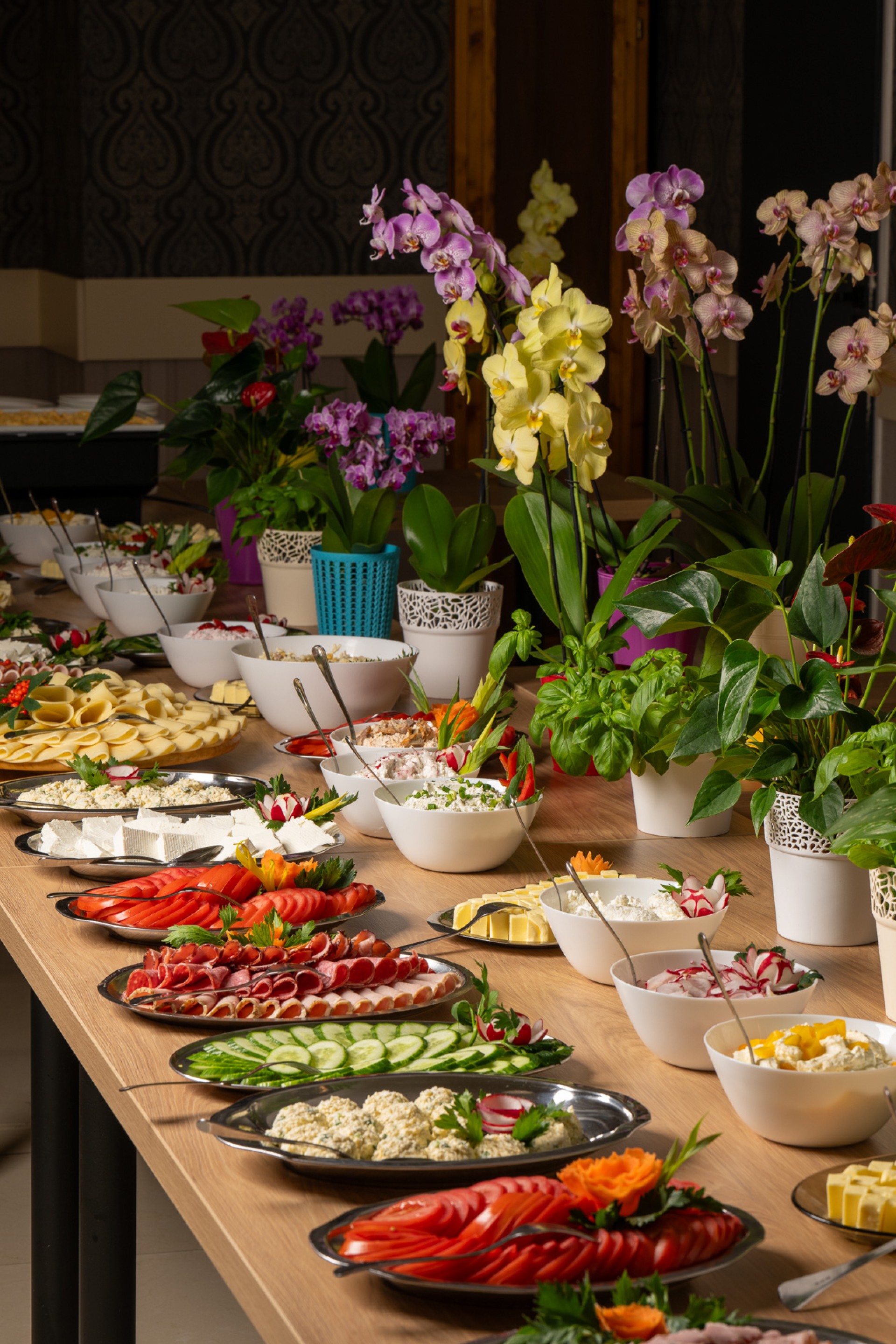 Wyśmienite Wyżywienie: Nasza kuchnia pod opieką Szefowej Anieli Baran oferuje pyszne, różnorodne dania w formie bufetu, zadowalając nawet najbardziej wymagających smakoszy.