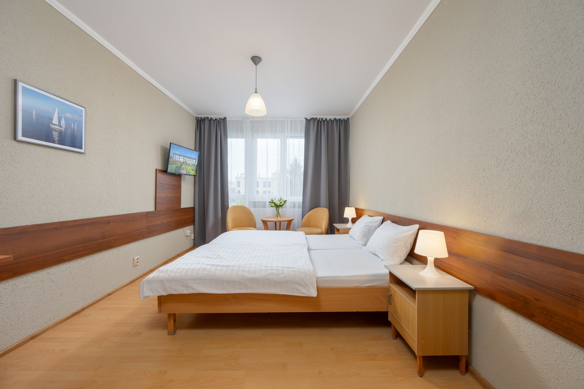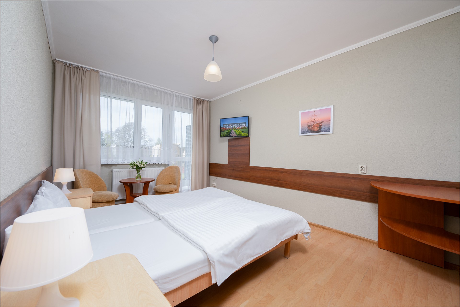 Zapraszamy do komfortowych, słonecznych pokoi z balkonami, zaledwie 200 m od plaży i 150 m od jeziora, w sercu Uzdrowiska Dąbki.