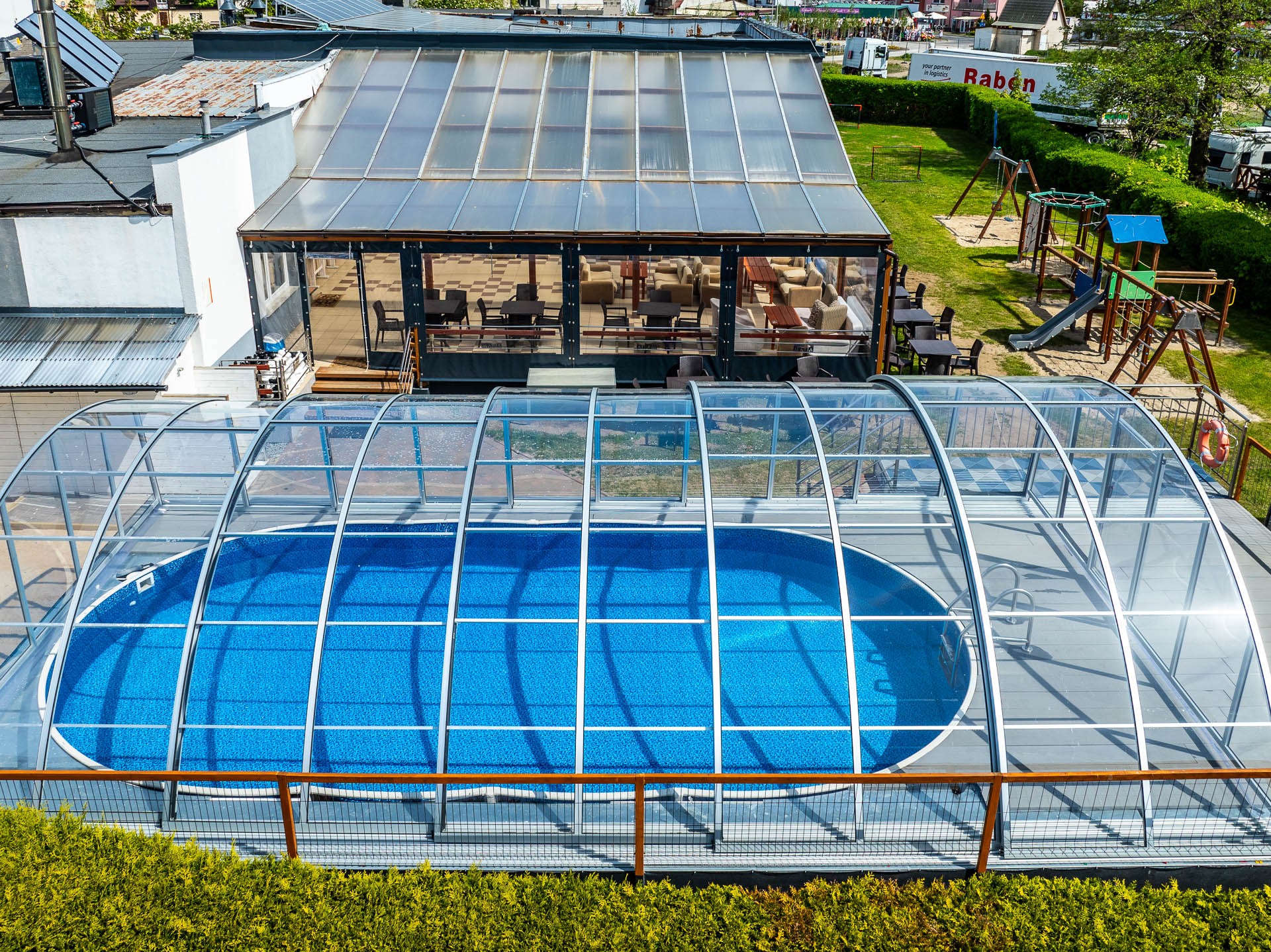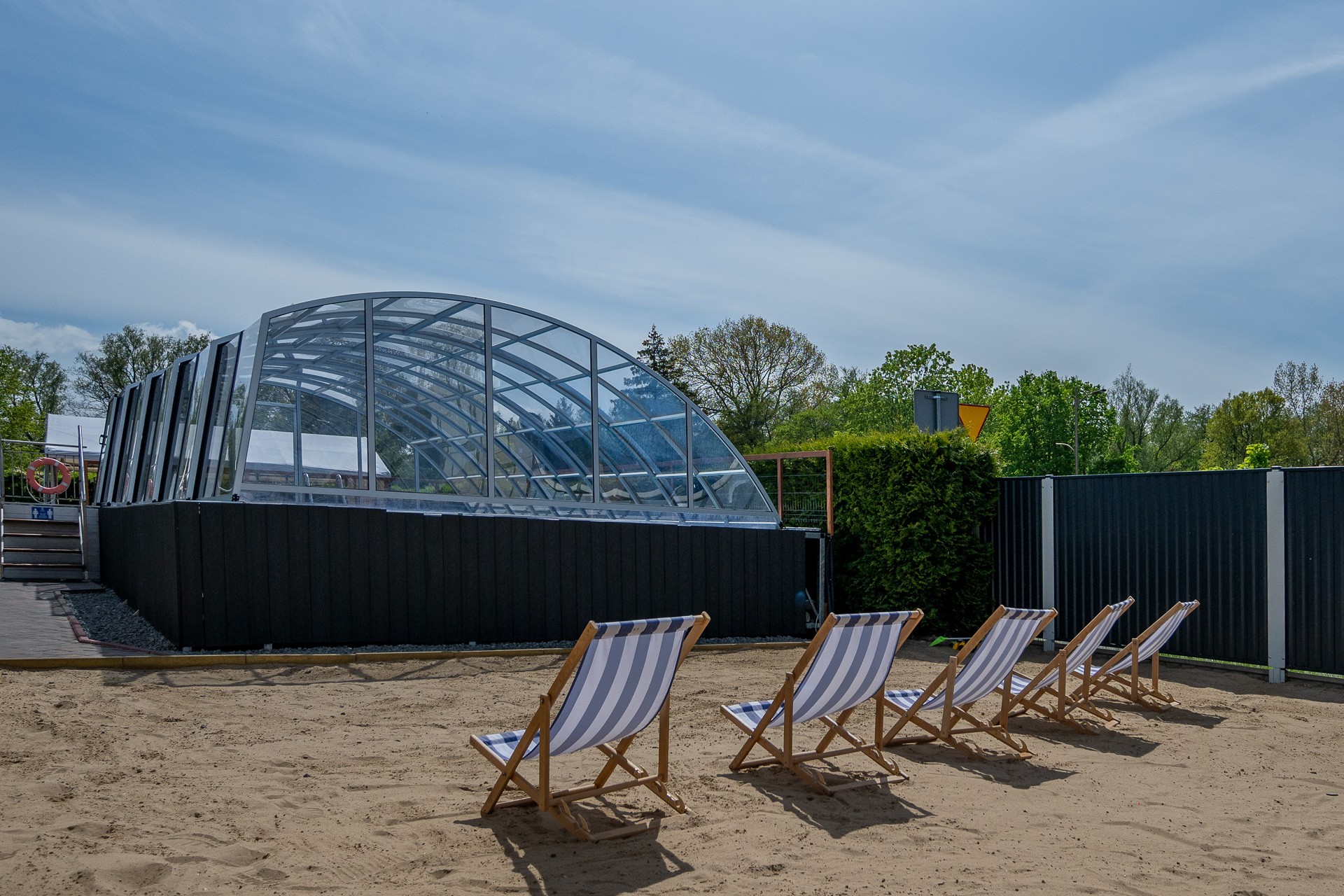 - Podgrzewany zadaszony basen z sztuczną plażą