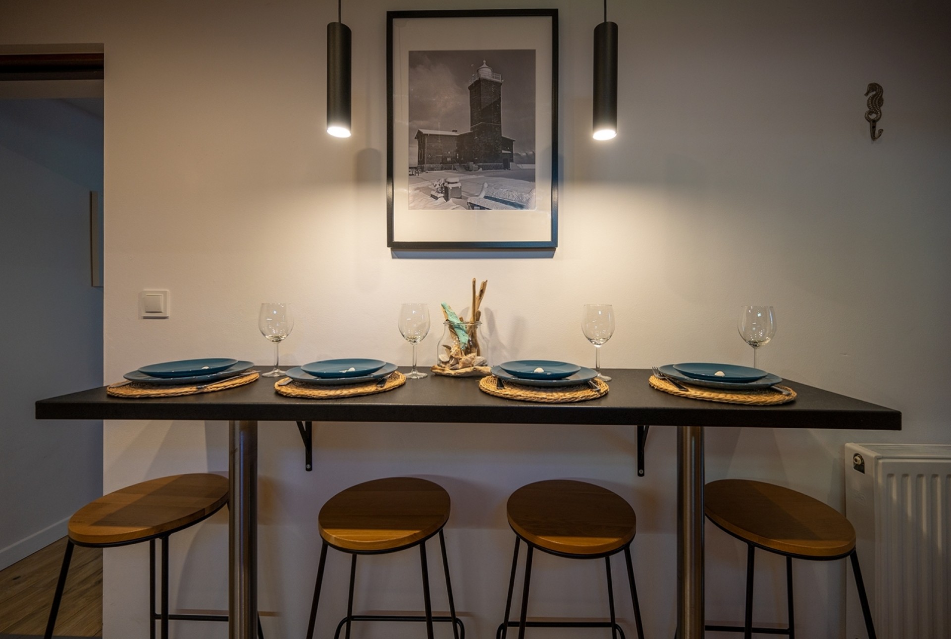 Umiejscowione są one na parterze dwurodzinnego budynku zlokalizowanego w samym centrum Darłówka.
