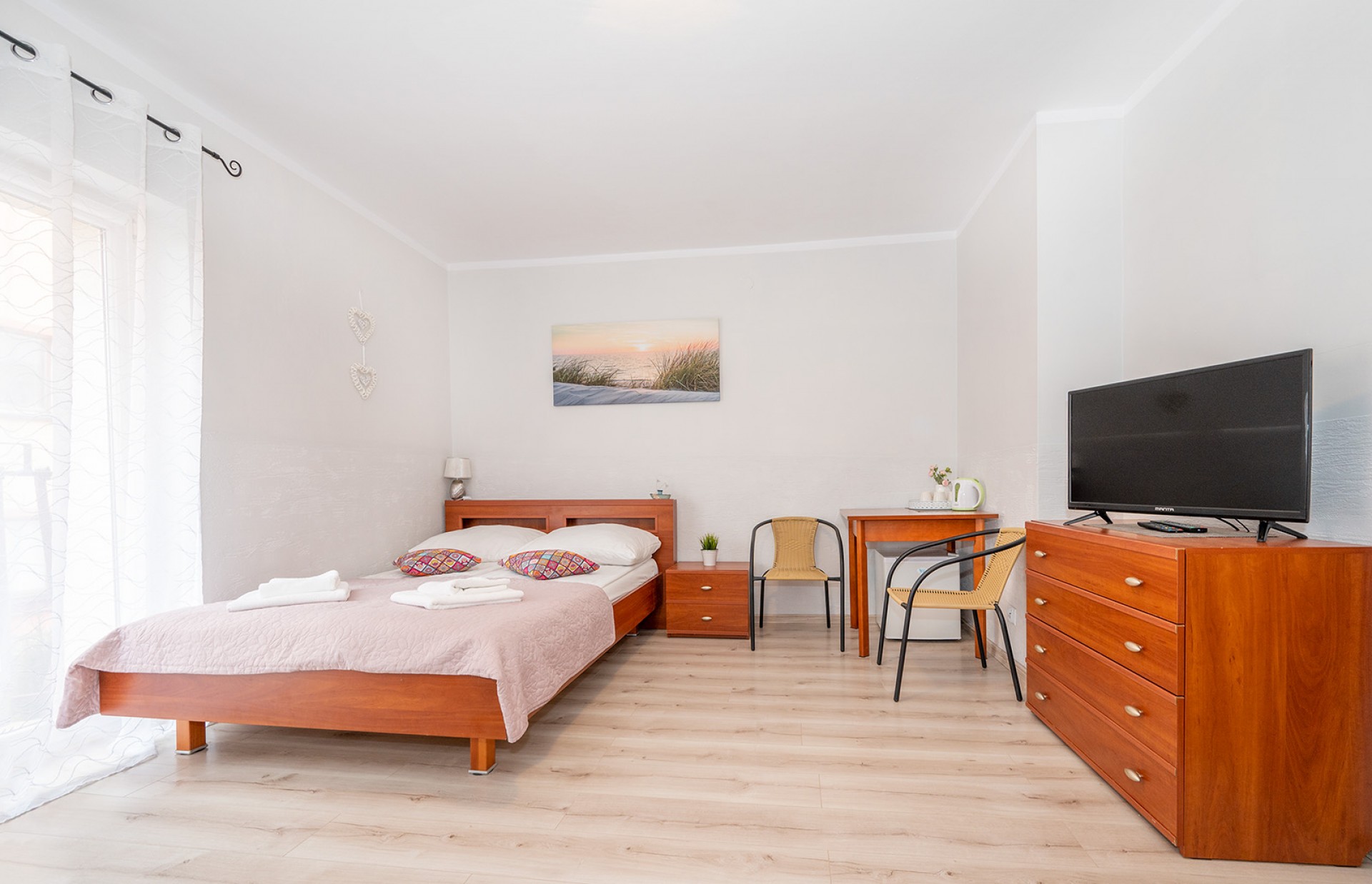 PENSJONAT WILLA BALTIC zapraszamy serdecznie na noclegi w Darłówku 450 m od morza i około 600m od centrum. Gwarantujemy relaks, spokój i komfort .Czeka na Państwa 14 komfortowych pokoi z łazienkami 2, 3,4 osobowe z możliwością dostawki. Do dyspozycji gości przygotowaliśmy aneks kuchenny z kompletnym wyposażeniem AGD takie jak kuchenka 4 palnikowa, piekarnik, mikrofala, lodówka, ekspres do kawy, toster. Pokoje są umeblowane, każdy posiada TV z płaskim ekranem, radio oraz sprzęt plażowy. Pokoje są jasne utrzymane w tonacji bieli i słonecznej. Cześć pokoi posiada bezpośrednie wyjście na nieduży ogródek z prywatnym grillem z zestawem mebli grodowych. W budynku jest bezprzewodowy internet światłowód co zapewnia komfortowe korzystanie z internetu. Ogrodzona posesja, ogród z basenem z podgrzewaną i filtrowaną wodą, plac zabaw dla dzieci oraz dwie przestronne wiaty gdzie w jednej znajduje się grill, wędzarnia natomiast w drugiej stoły do gry z piłkarzykami i cymbergajem to dodatkowe zalety naszego pensjonatu w Darłówku. Otacza nas cicha, spokojna okolica z licznymi atrakcjami i rozległą bazą gastronomiczno - usługową. Z myślą o najmłodszych w obiekcie obowiązuje całkowity zakaz palenia. Dla osób palących przygotowaliśmy zaciszne kąciki w ogrodzie.Dla gości Willa Baltic zostałyprzygotowane miejsca parkingowe w odległości okolo 60 m od obiektu. Parking jest strzeżony i monitorowany w cenie 20,00 zł za dobę. Lokalizacja naszego pensjonatu to idealne miejsce na wakacje. W pobliżu Willa Baltic są jadłodajnie, restauracja, sklepy spożywcze, apteka, poczta. Możliwość wyżywienia w licznych stołówkach w promieniu 200 m. Darłówko to urokliwe miejsce do spędzania niezapomnianych wakacji. Złocista, czysta plaża uhonorowana błękitną flagą, piękna spacerowa promenada. Zlokalizowany w pobliżu całoroczny aqaapark oraz park linowy czy też wesołe miasteczko sprawia, że miasto jest bardzo przyjazne za równo dla par jak i dla dzieci. Mamy do dyspozycji sporo km ścieżek rowerowych