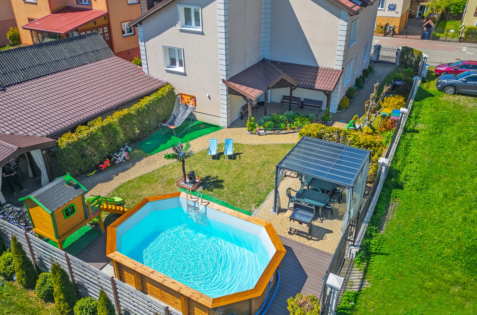 OBIEKT ODDALONY TYLKO 400M OD PIASZCZYSTEJ BLAŻY. PIĘKNY OGRÓD Z BASENEM Z PODGRZEWANĄ I FILTROWANĄ WODĄ.