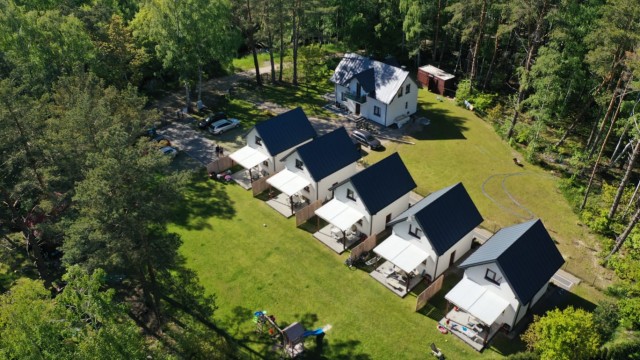 To kameralny kompleks 5 domków (57 m²) dla 5–7 osób, położony zaledwie 500 m od plaży, przy samym Nadmorskim Parku Krajobrazowym. Idealna lokalizacja dla miłośników ciszy, natury i aktywnego wypoczynku.