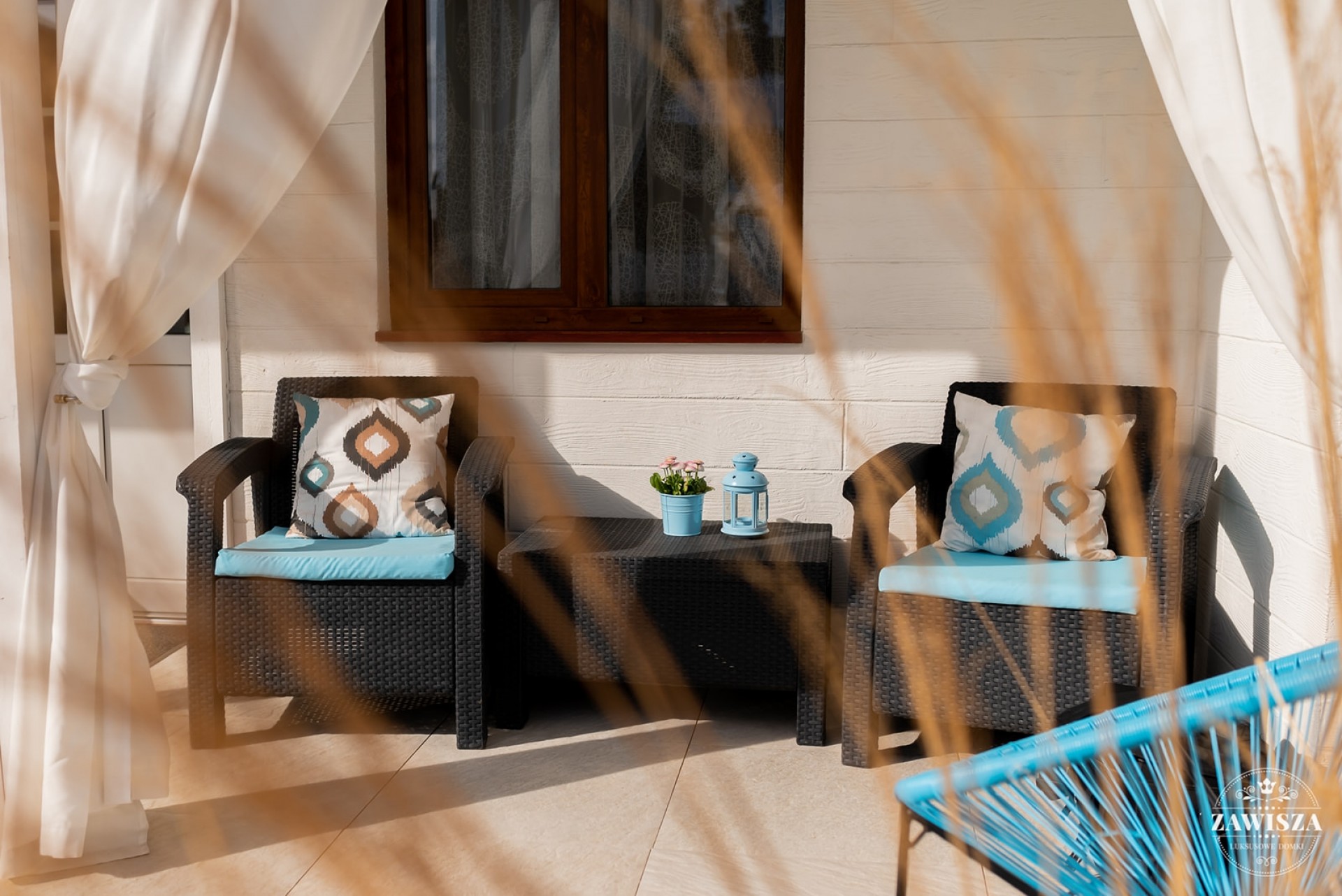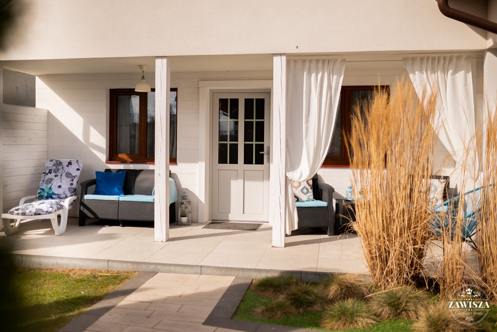 Wszystkie domki mają tarasy od słonecznej, południowej strony.