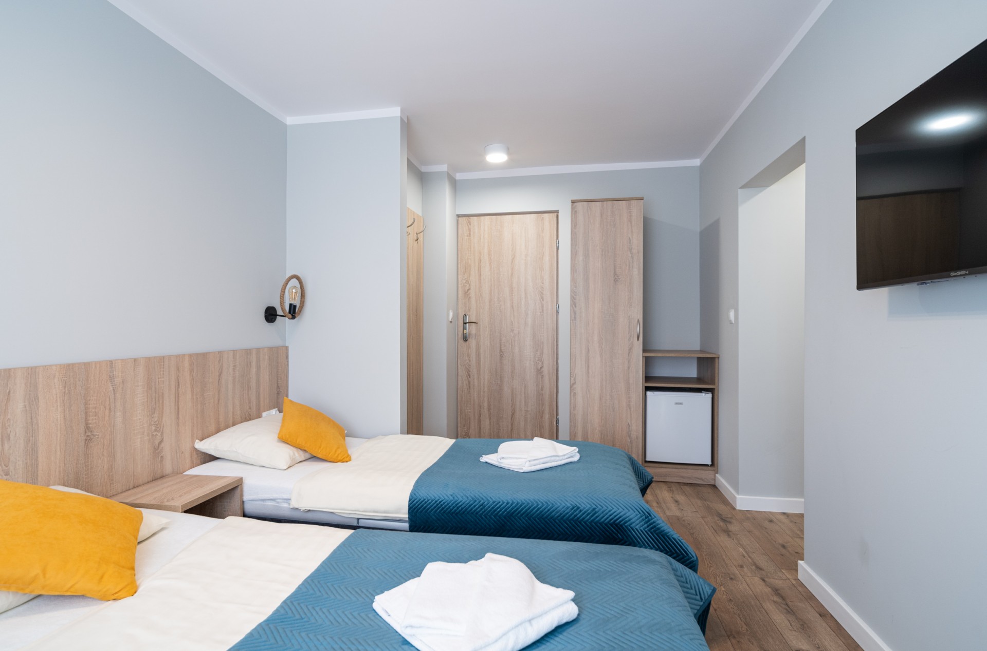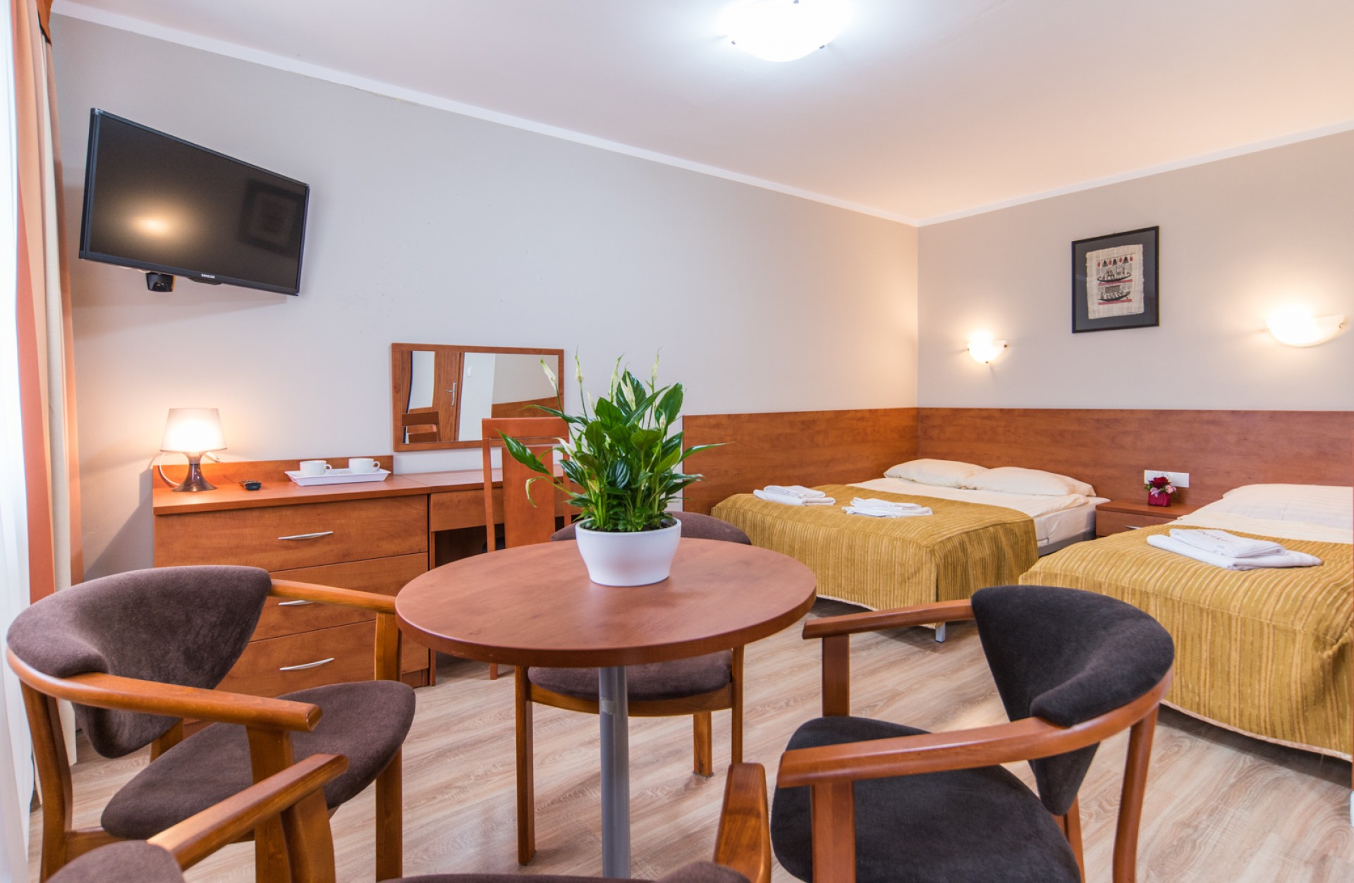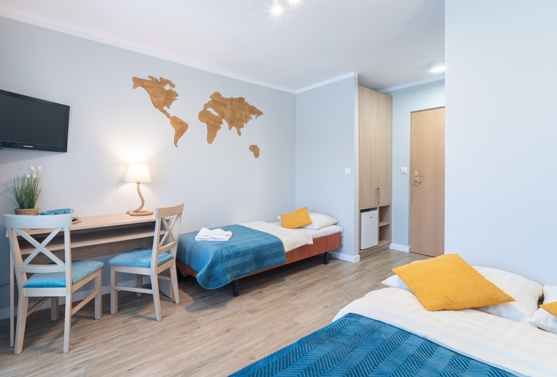 Oferujemy noclegi z wyżywieniem w pokojach 1, 2 3 i 4 -osobowych oraz pokojach typu studio 3 oraz 4-osobowych,