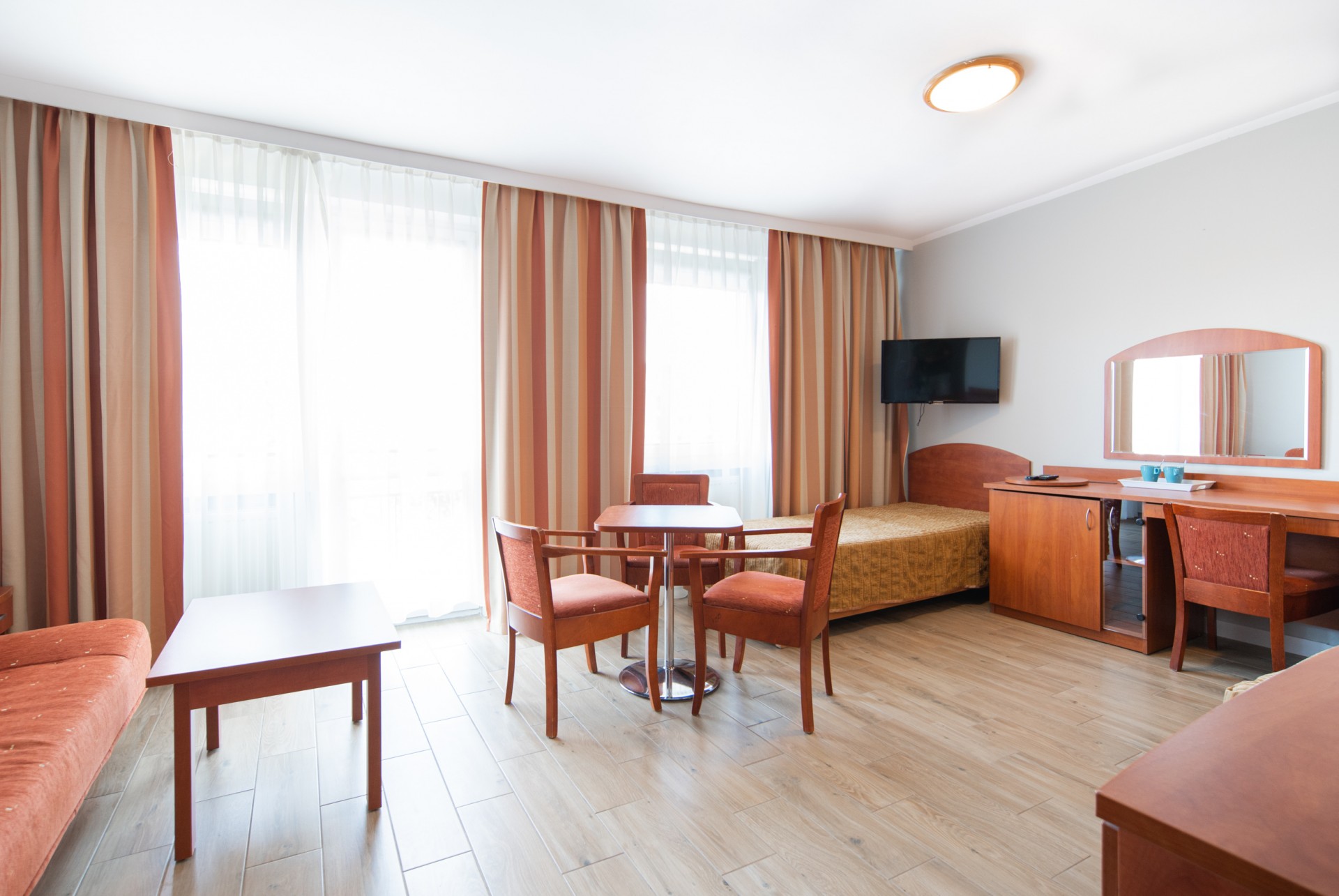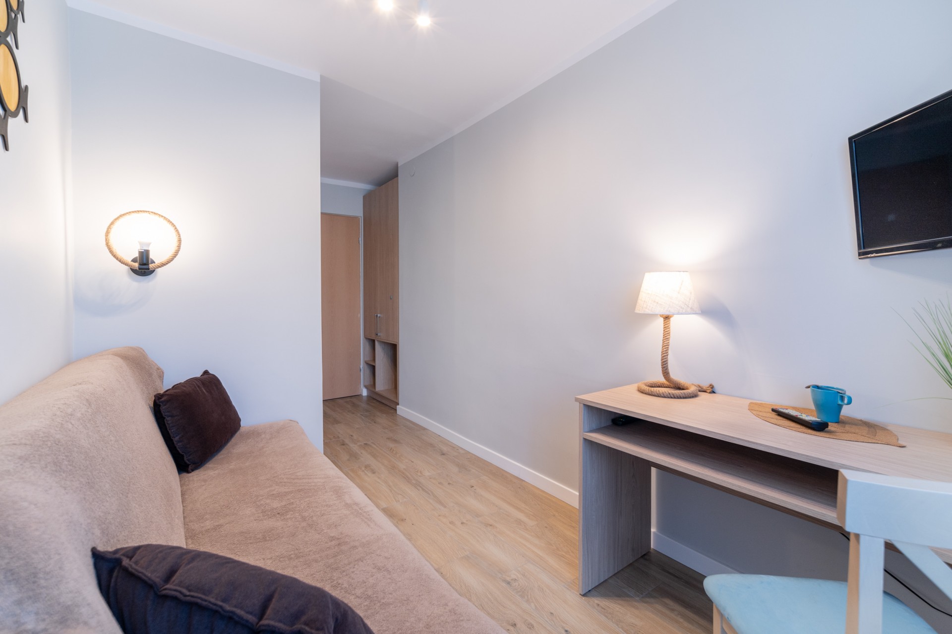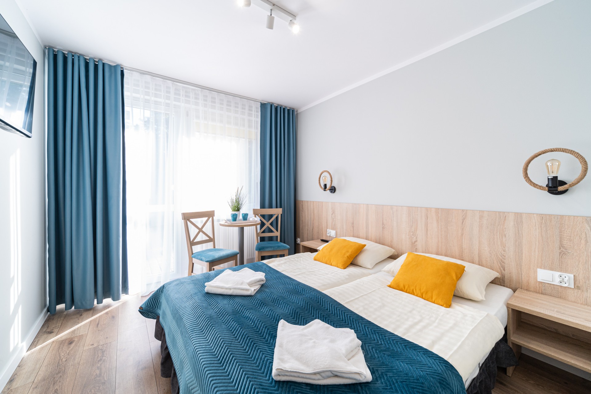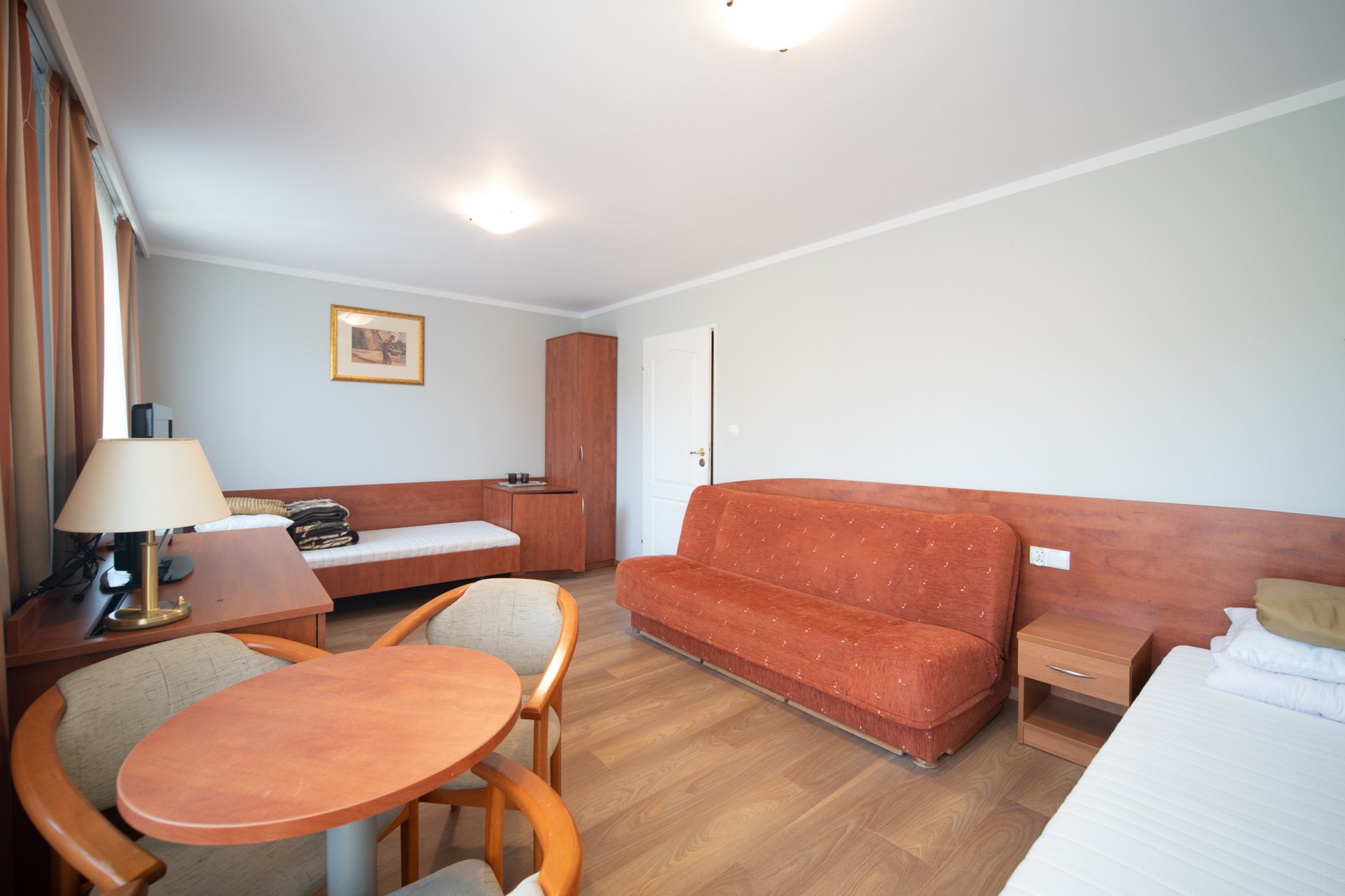 Oferujemy noclegi z wyżywieniem w pokojach 1, 2 3 i 4 -osobowych oraz pokojach typu studio 3 oraz 4-osobowych,