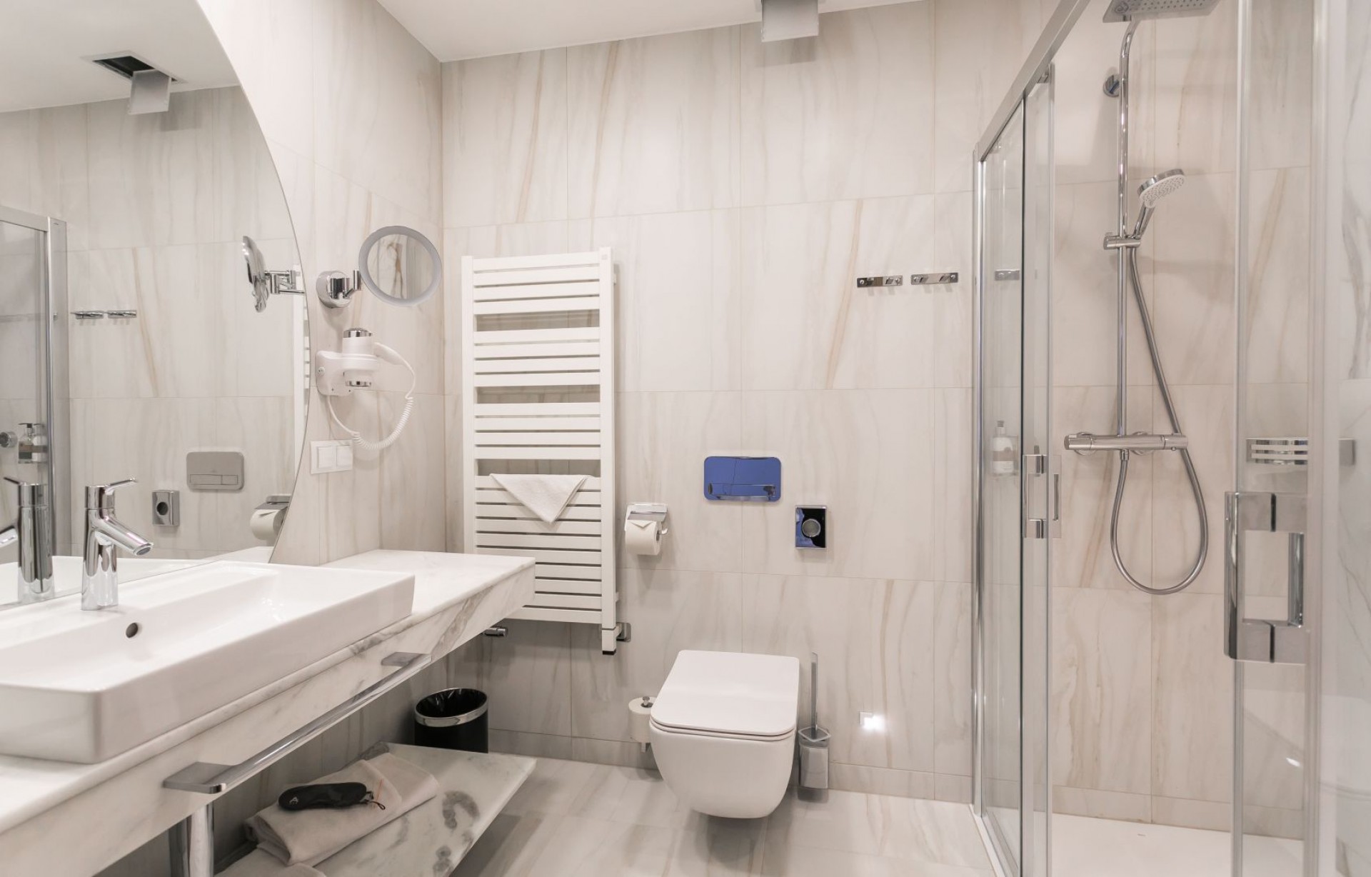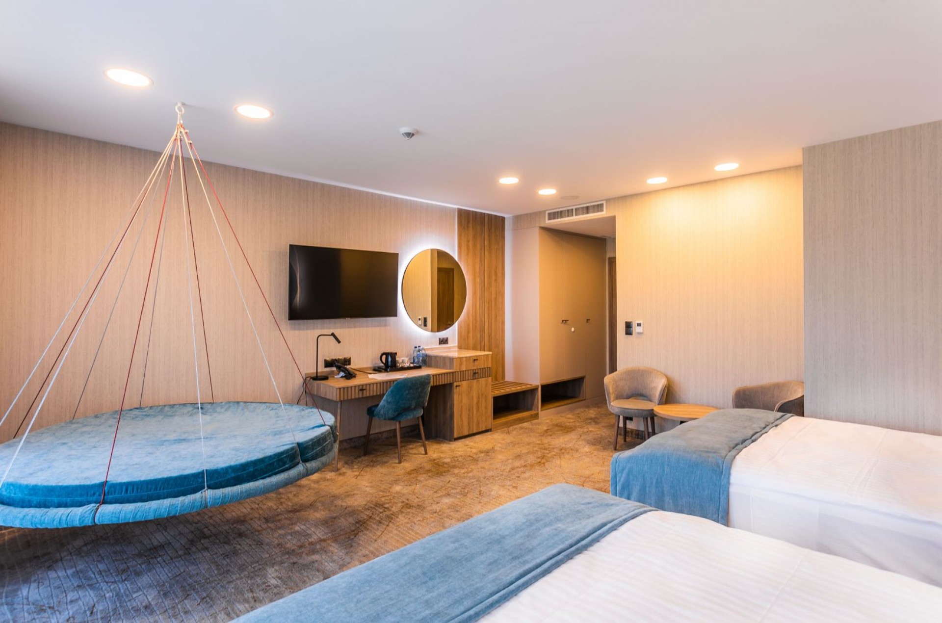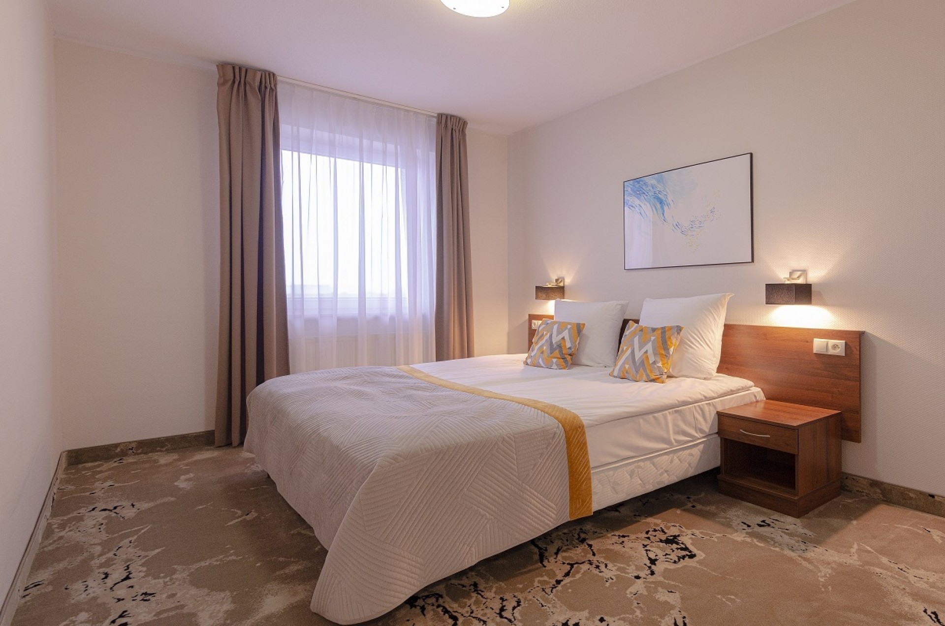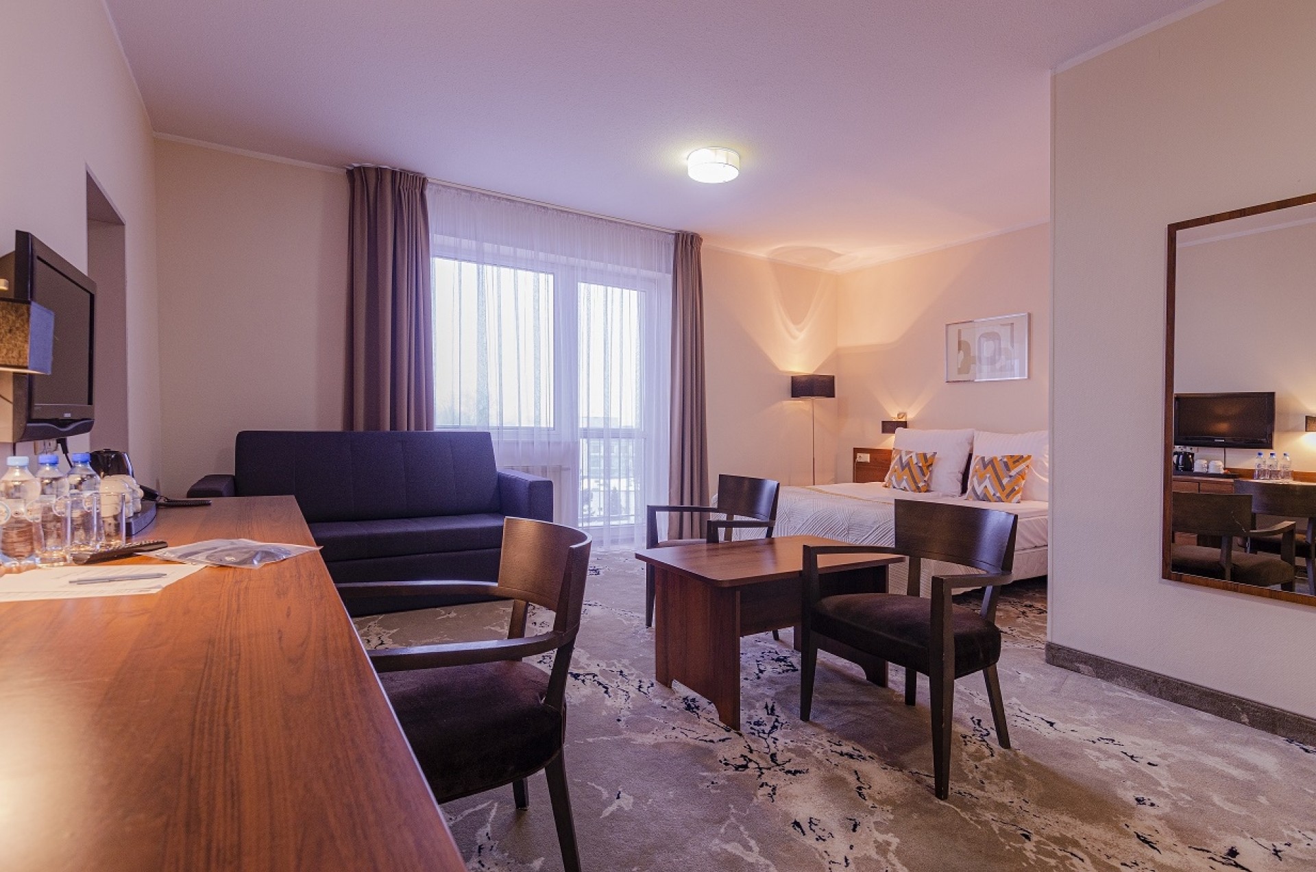 Oferujemy przestronne pokoje w trzech standardach: Standard, Komfort oraz nowoczesne De Luxe. Każdy z nich wyposażony jest w prywatną łazienkę, telewizję kablową oraz bezpłatne Wi-Fi, a większość posiada balkon. Pokoje De Luxe to propozycja dla osób ceniących najwyższy standard – eleganckie wnętrza z charakterystyczną huśtawką, klimatyzacją oraz minibarem zapewniają wyjątkowe warunki pobytu.