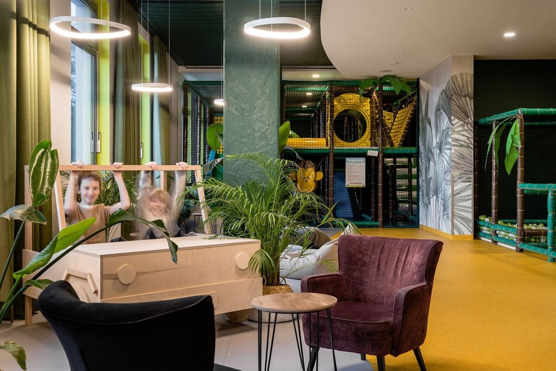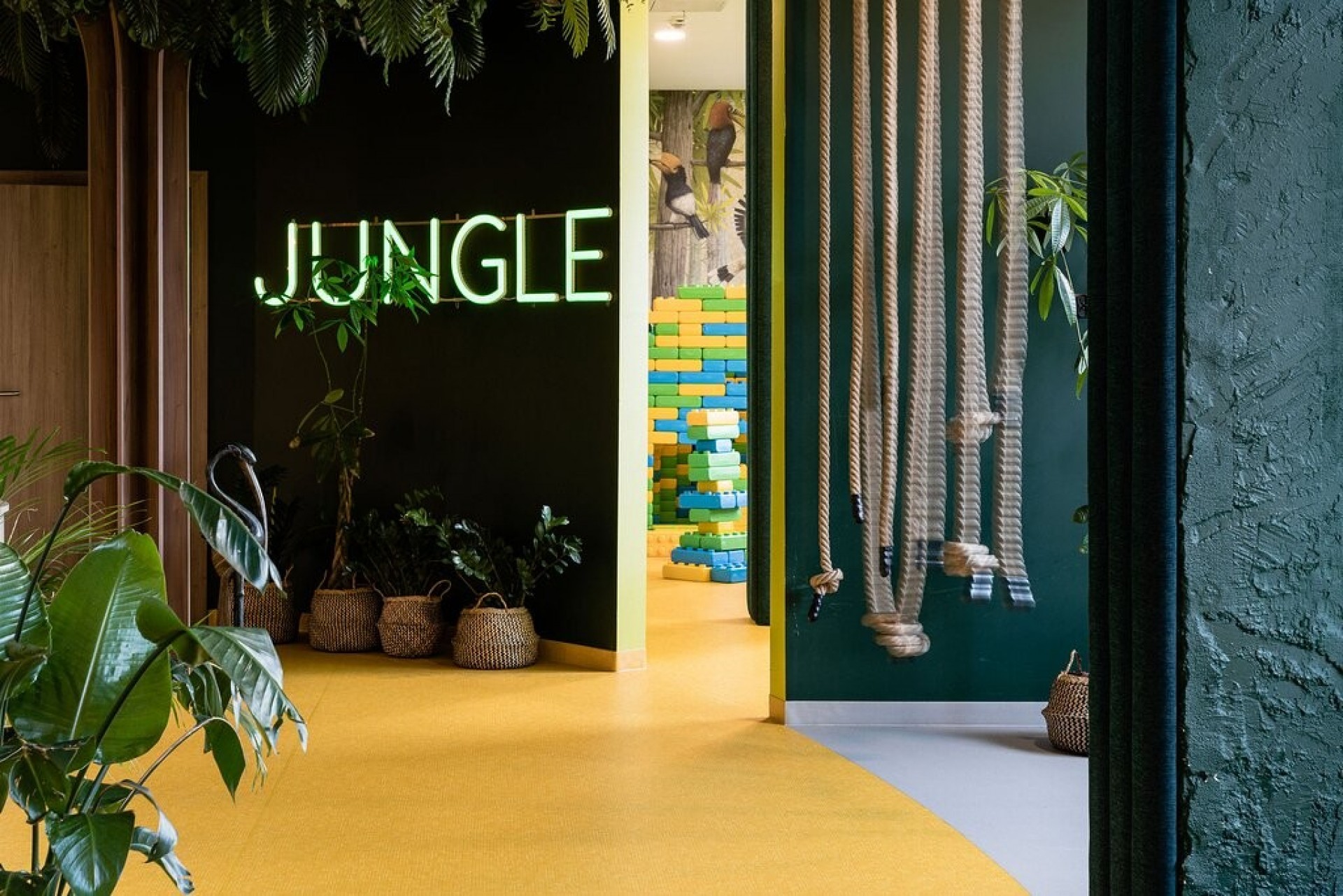 strefa Fun&Jungle z małpim gajem, klockami XXL i salonem gier,