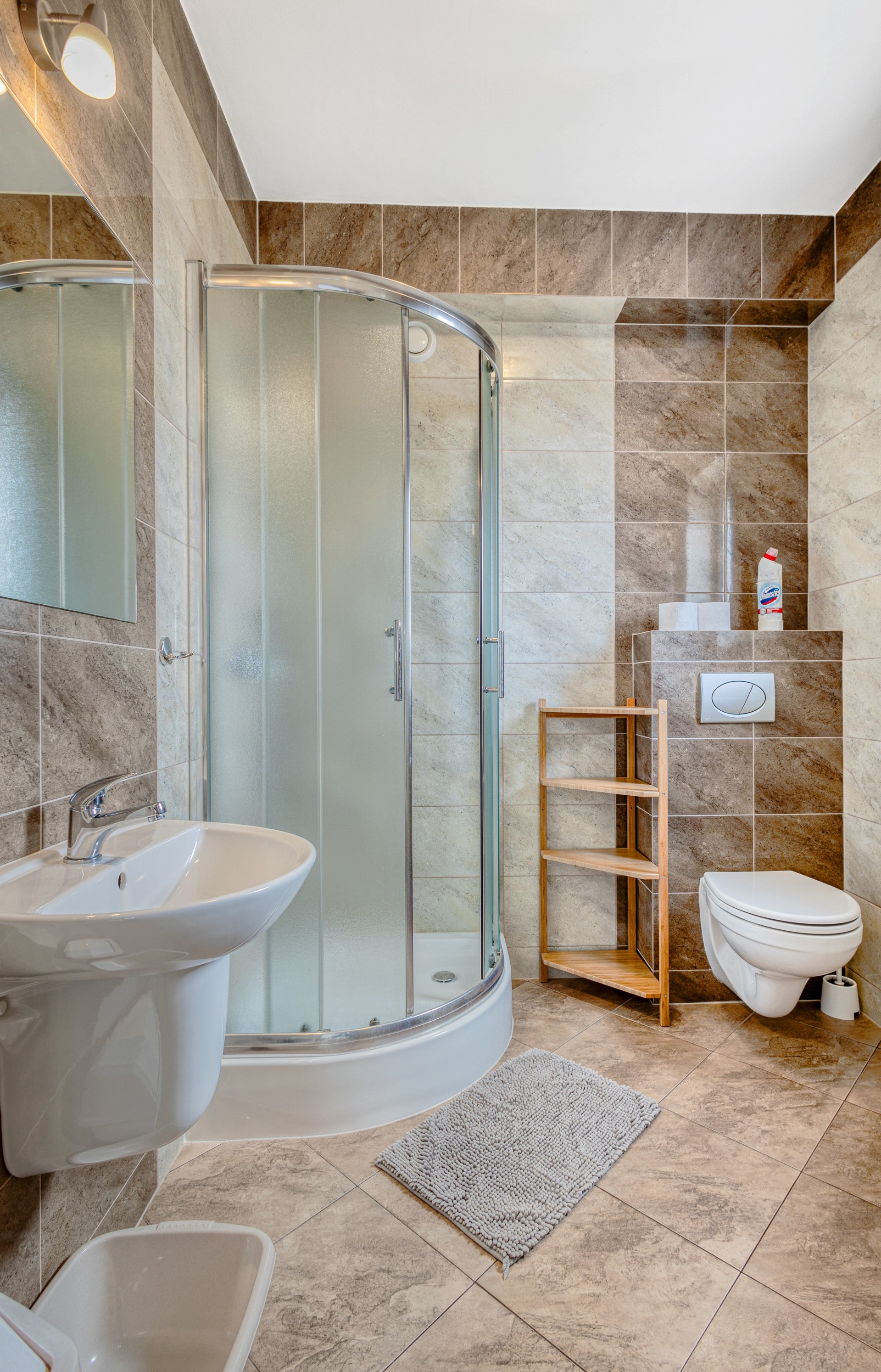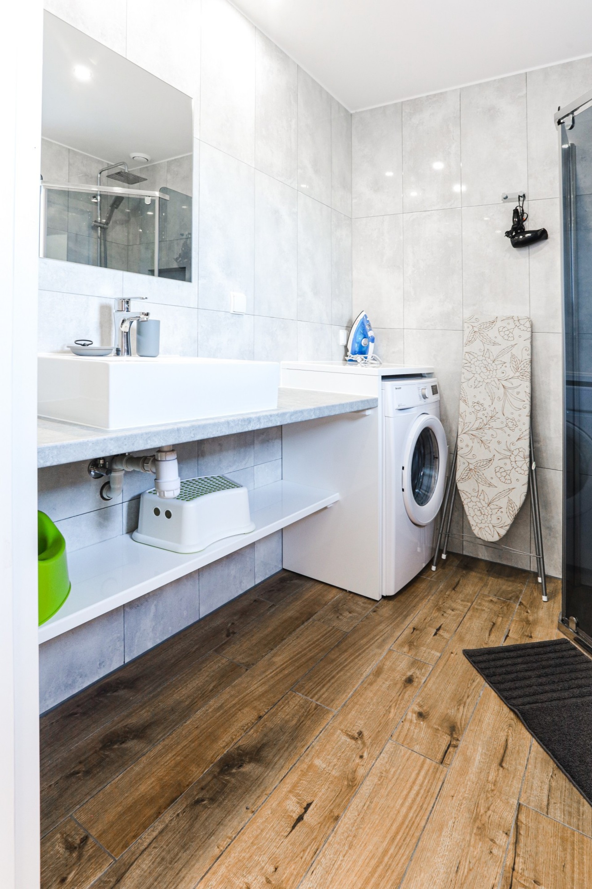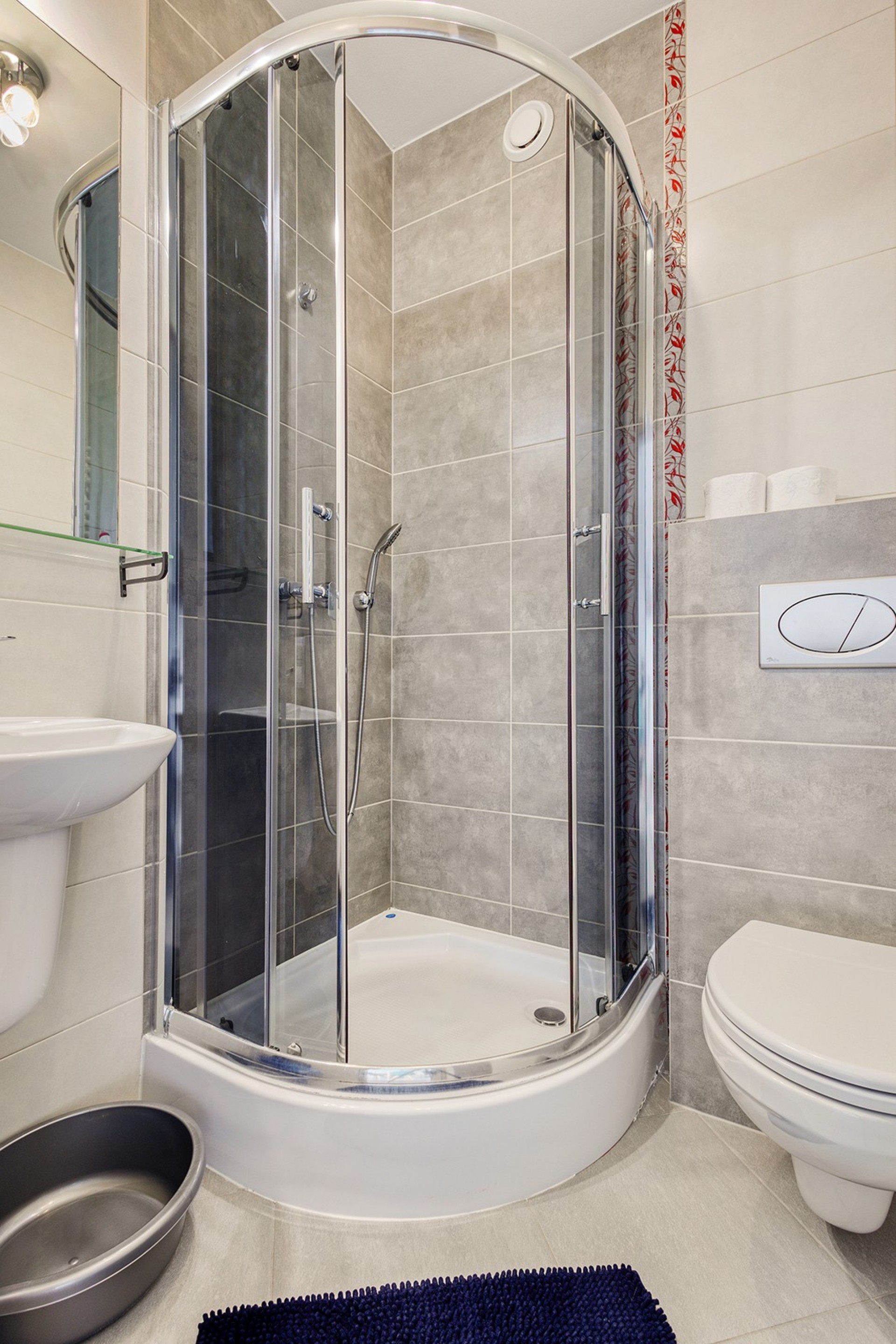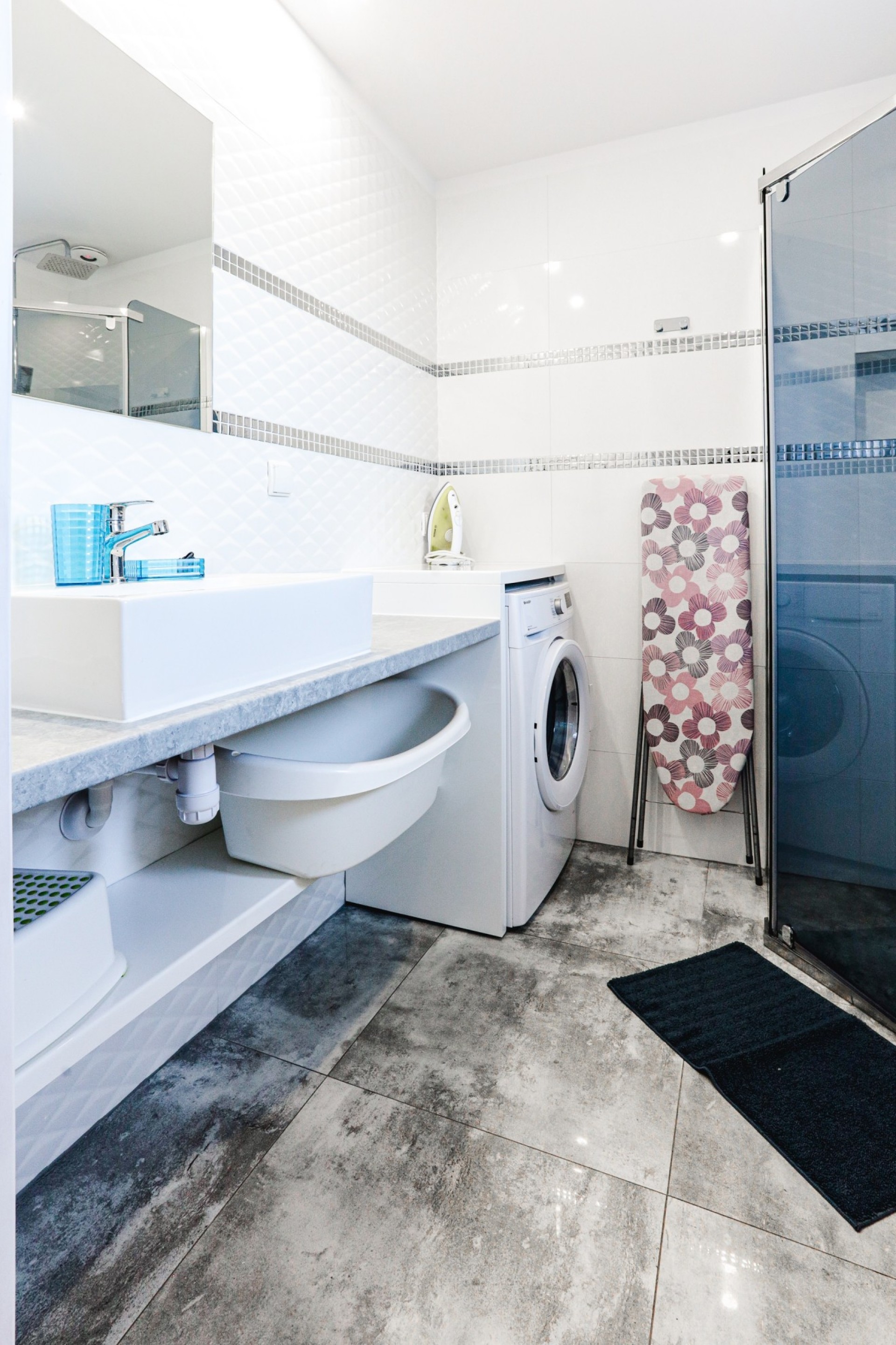 *łazienka z kabiną, (nie zapewniamy ręczników!!) pralka, żelazko z deską do prasowania, suszarka do włosów suszarka na bieliznę, odkurzacz, sprzęt plażowy (parawan i leżaki)