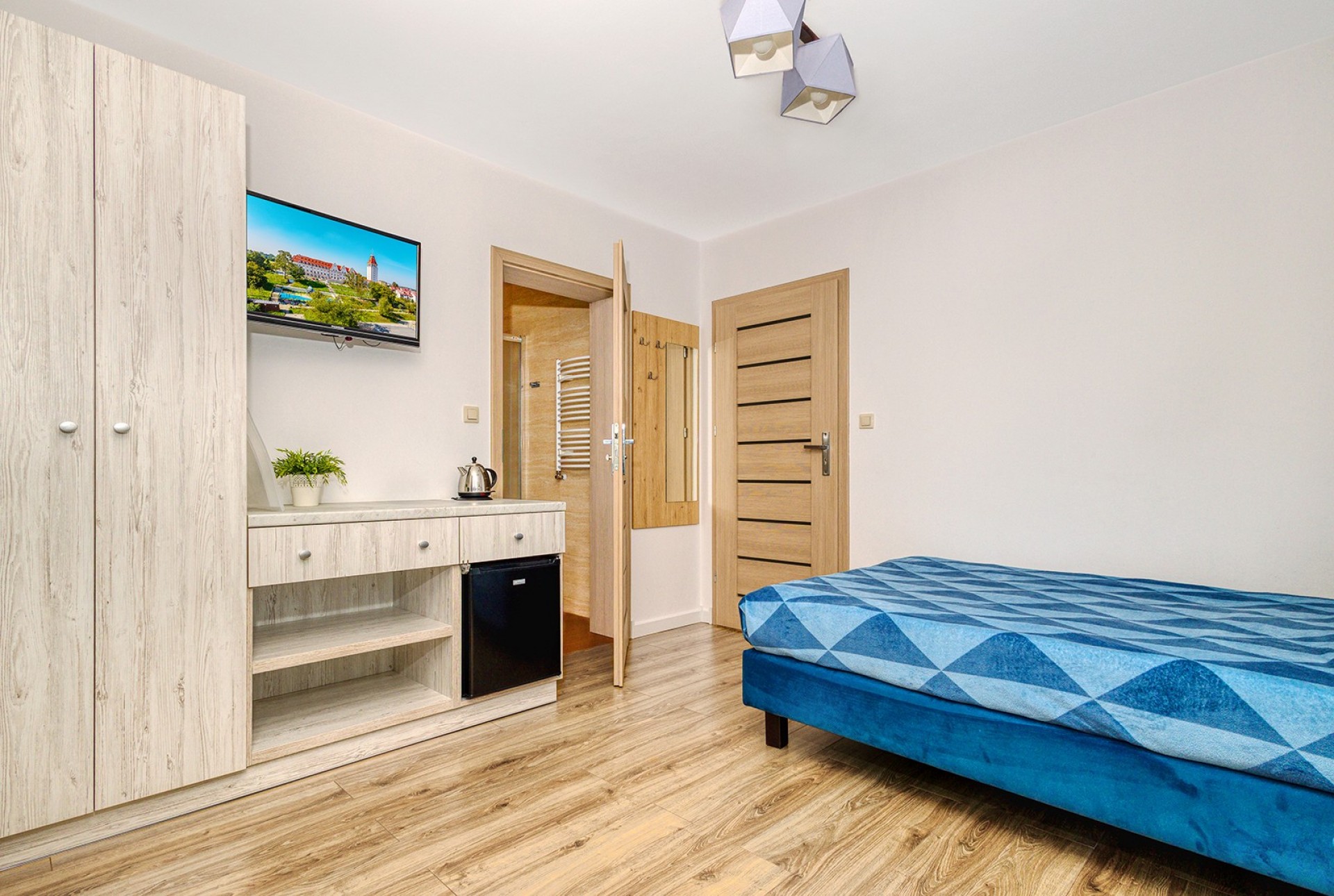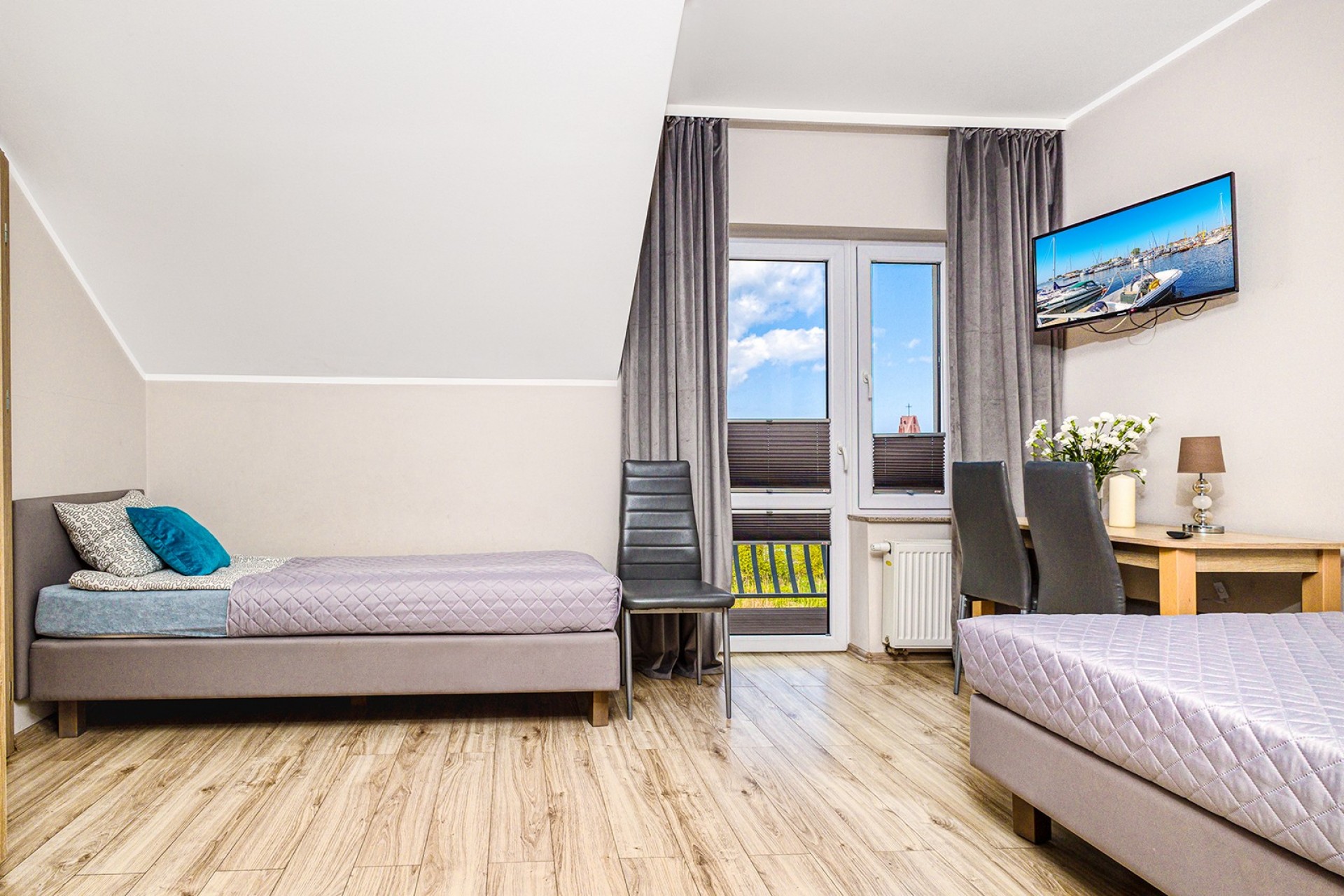 Do Państwa dyspozycji przygotowaliśmy również pokoje 2, 3 i 4 osobowe, studia dwupokojowe w budynku głównym BARKA