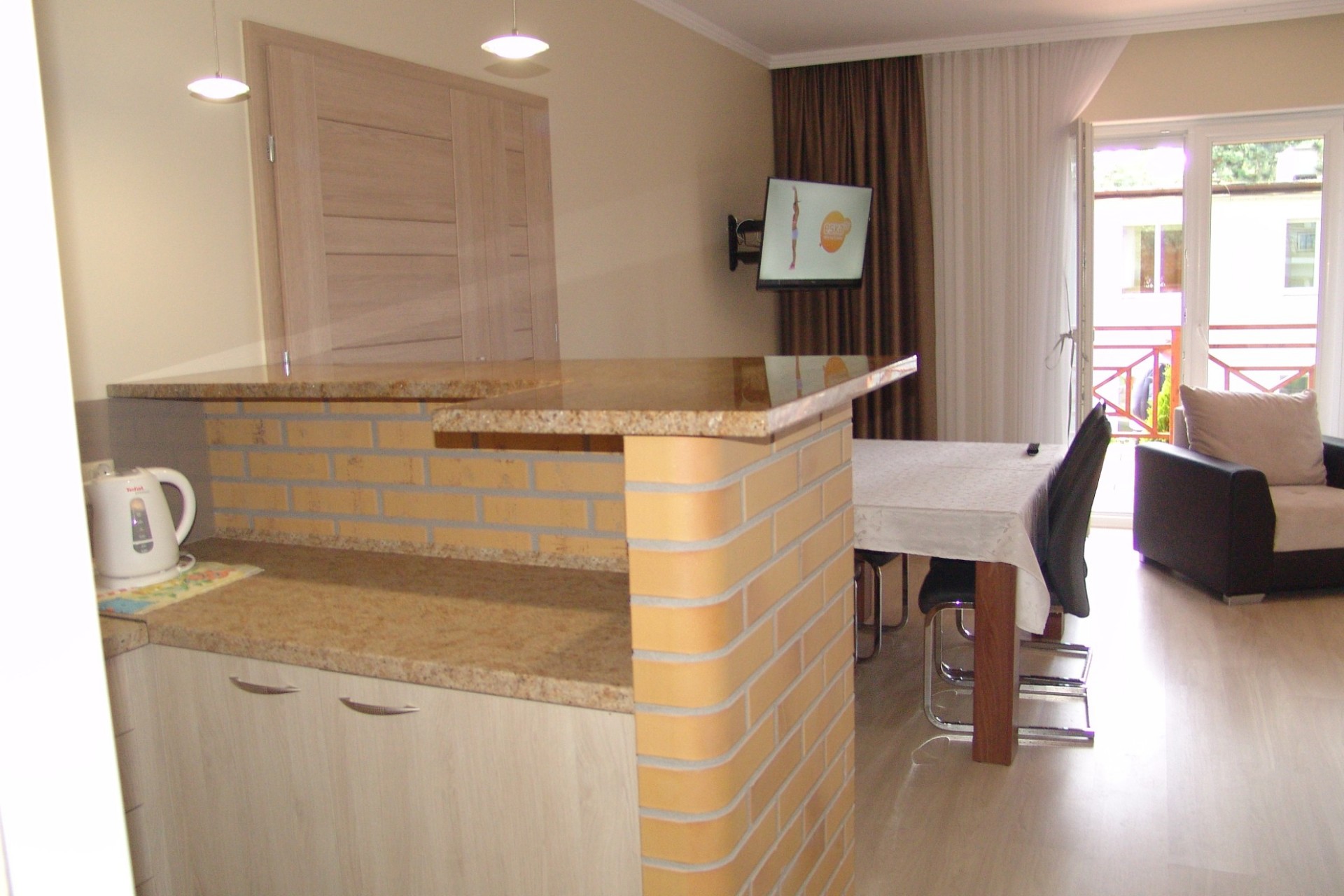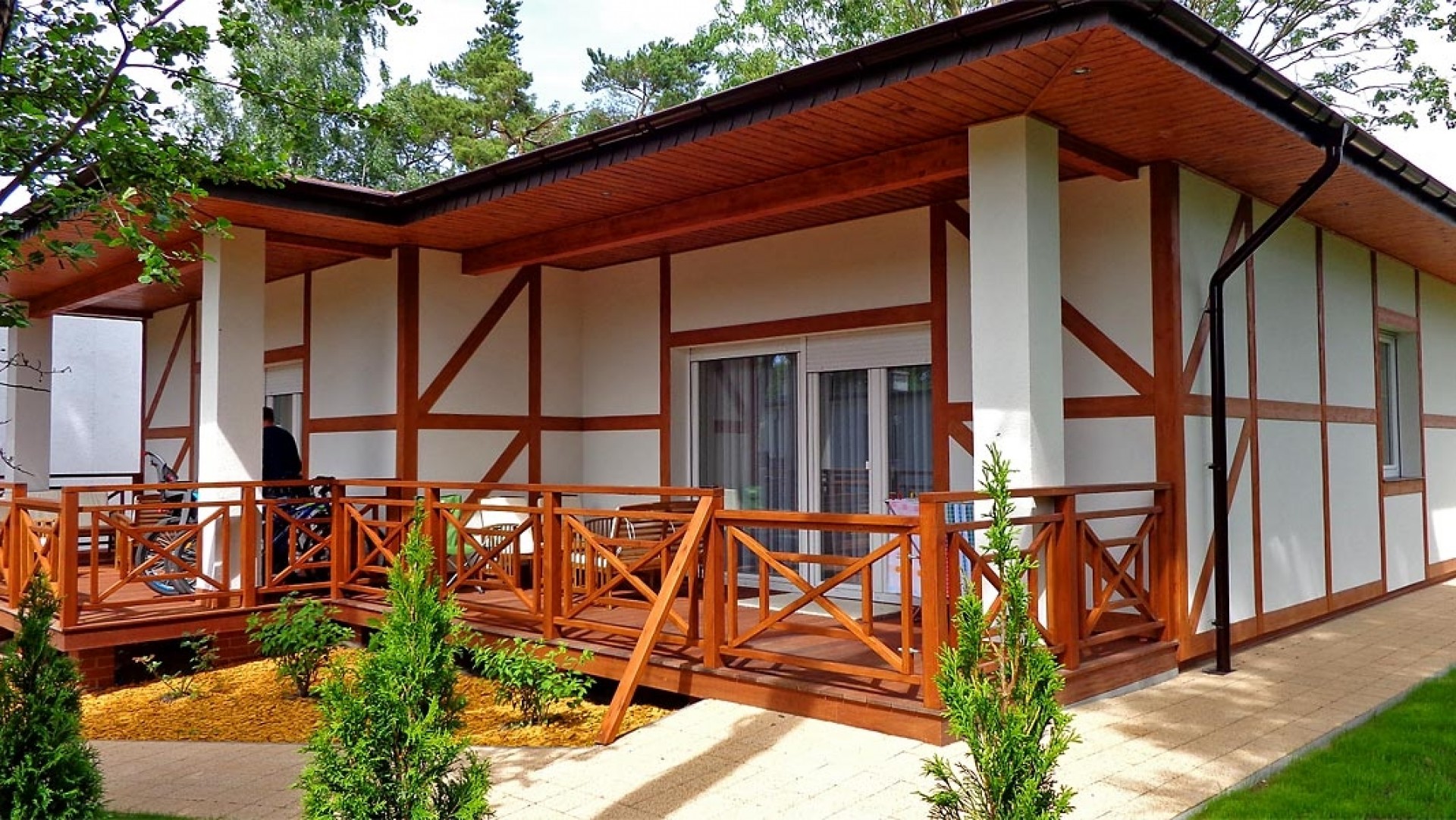 Pokoje z balkonami, w domkach kuchnia.