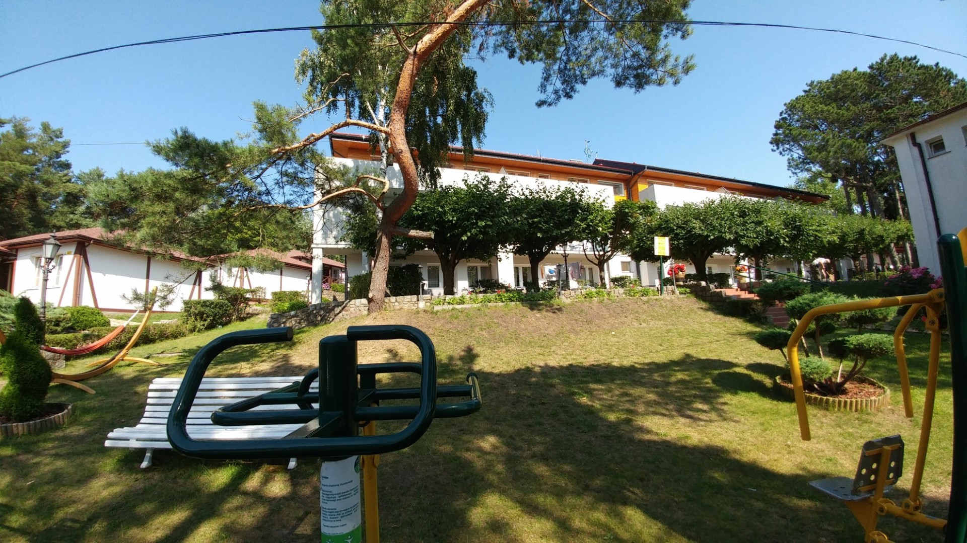 Teren zadrzewiony z placem zabaw dla dzieci, kortem tenisowym, kortem PADEL , boiskiem do koszykówki lub siatkówki, miejscem do grillowania.
