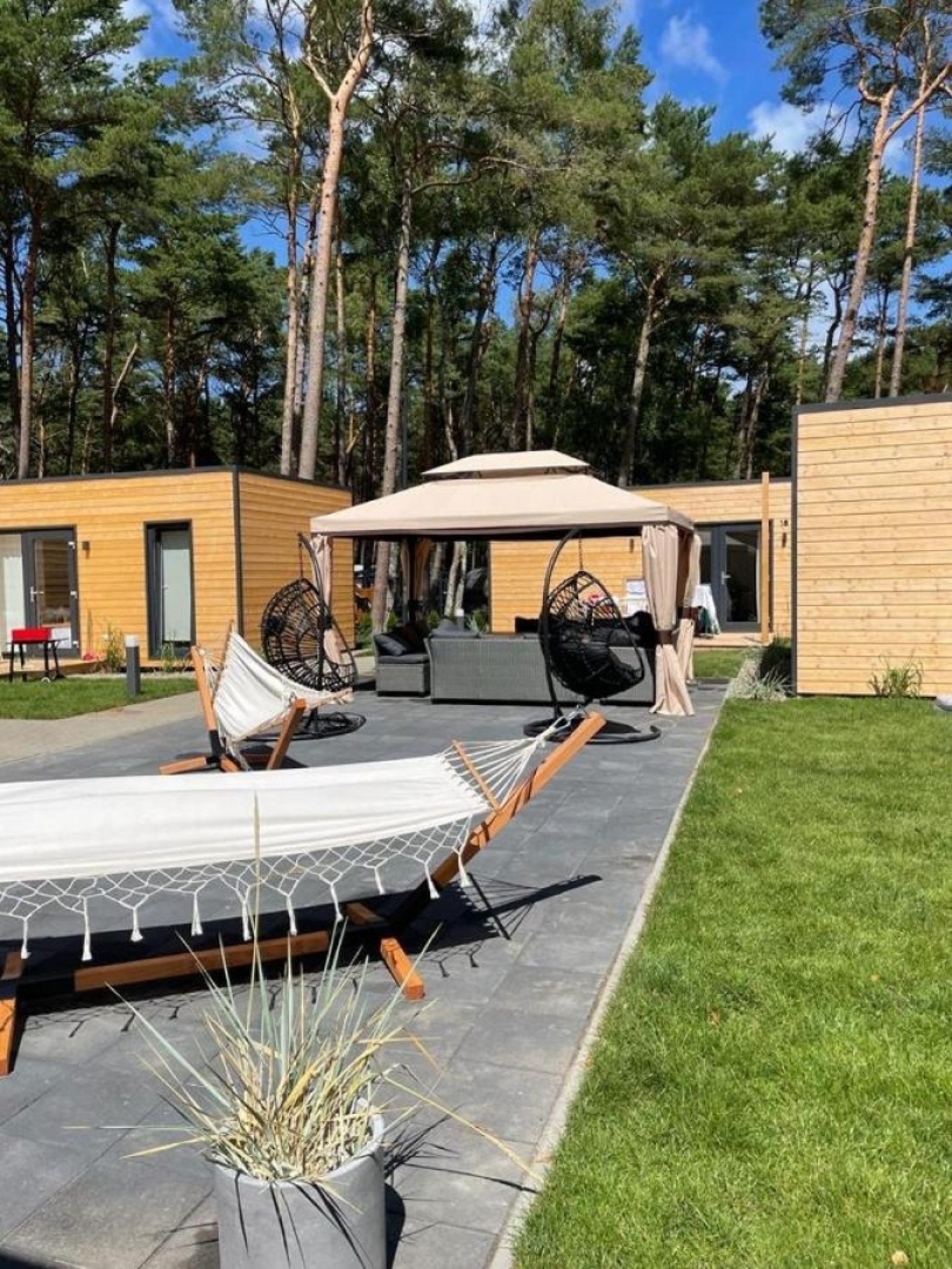 Części wspólne ośrodka to plac zabaw, trampolina, tyrolka, stół do ping-ponga oraz plaża z leżakami do zabawy lub wspólnych spotkań.