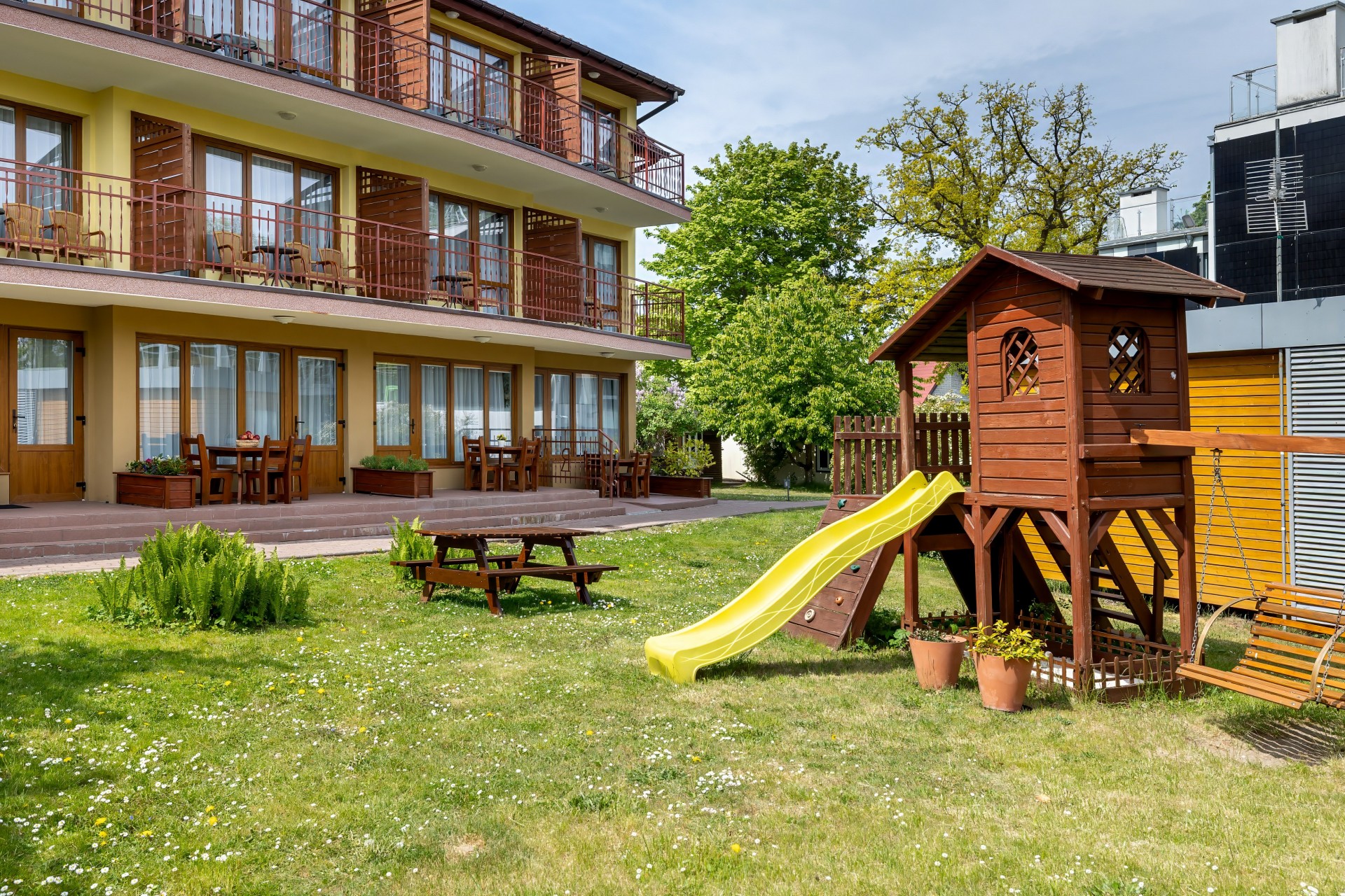 Na terenie obiektu znajduje się plac zabaw oraz stół do ping ponga (sprzęt można wypożyczyć w recepcji).