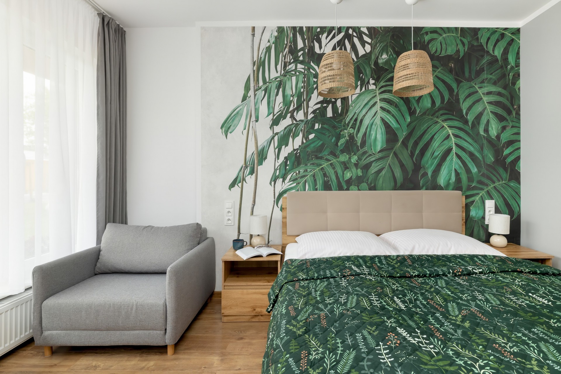 Dużo terenów zielonych, możliwość grillowania, parking na terenie posesji zamykany na noc.