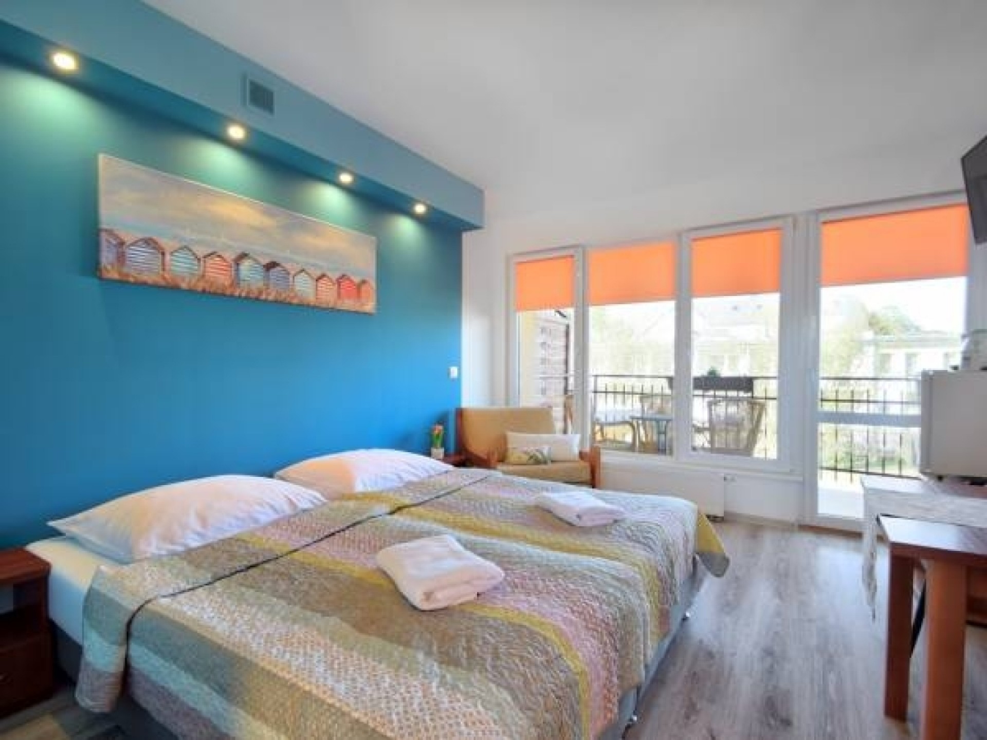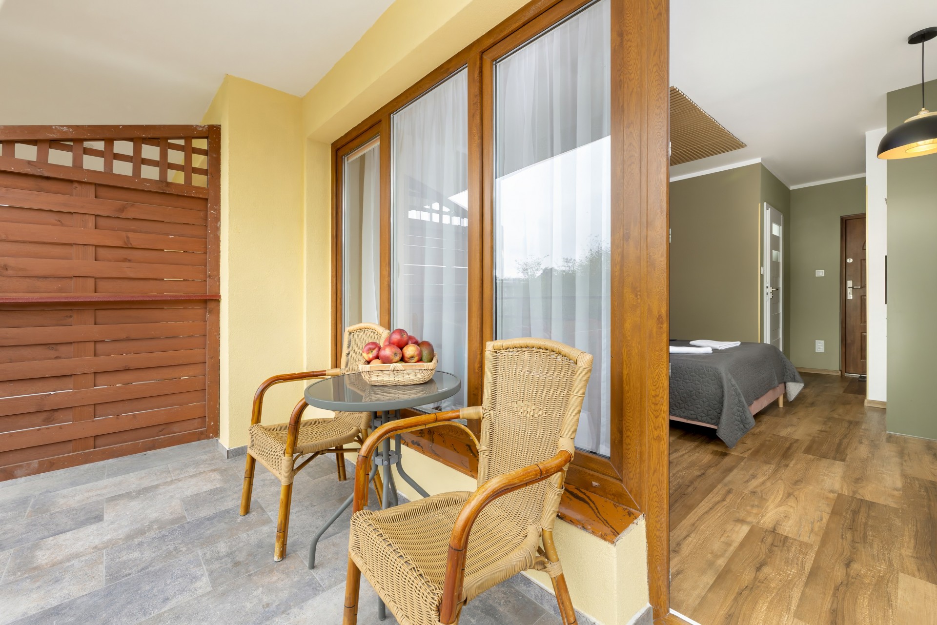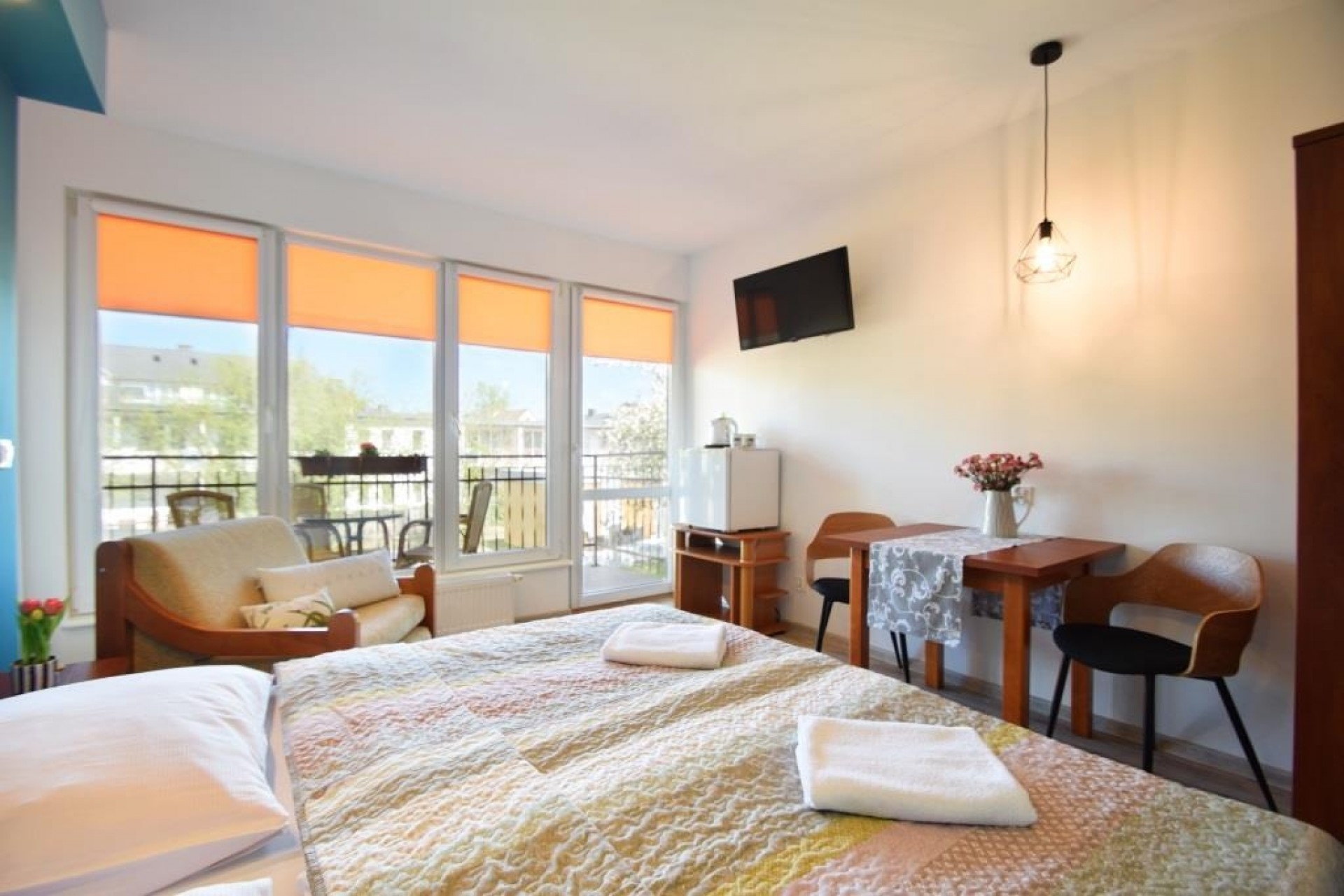 Wszystkie pokoje posiadają balkony lub małe tarasy.