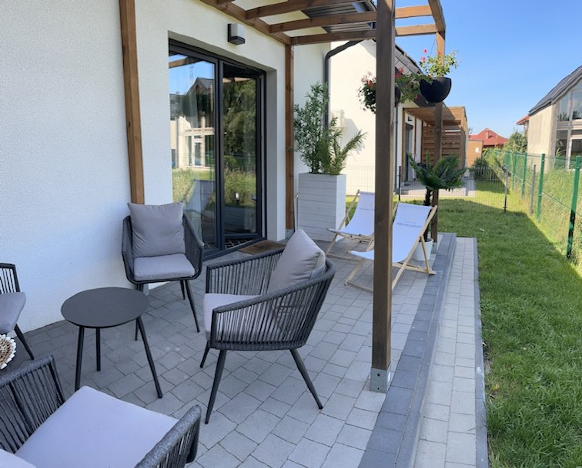 Oferujemy przestronny, nowy, komfortowy i w pełni wyposażony dom z ogrodem ogrodzony płotem do wyłącznej dyspozycji.
