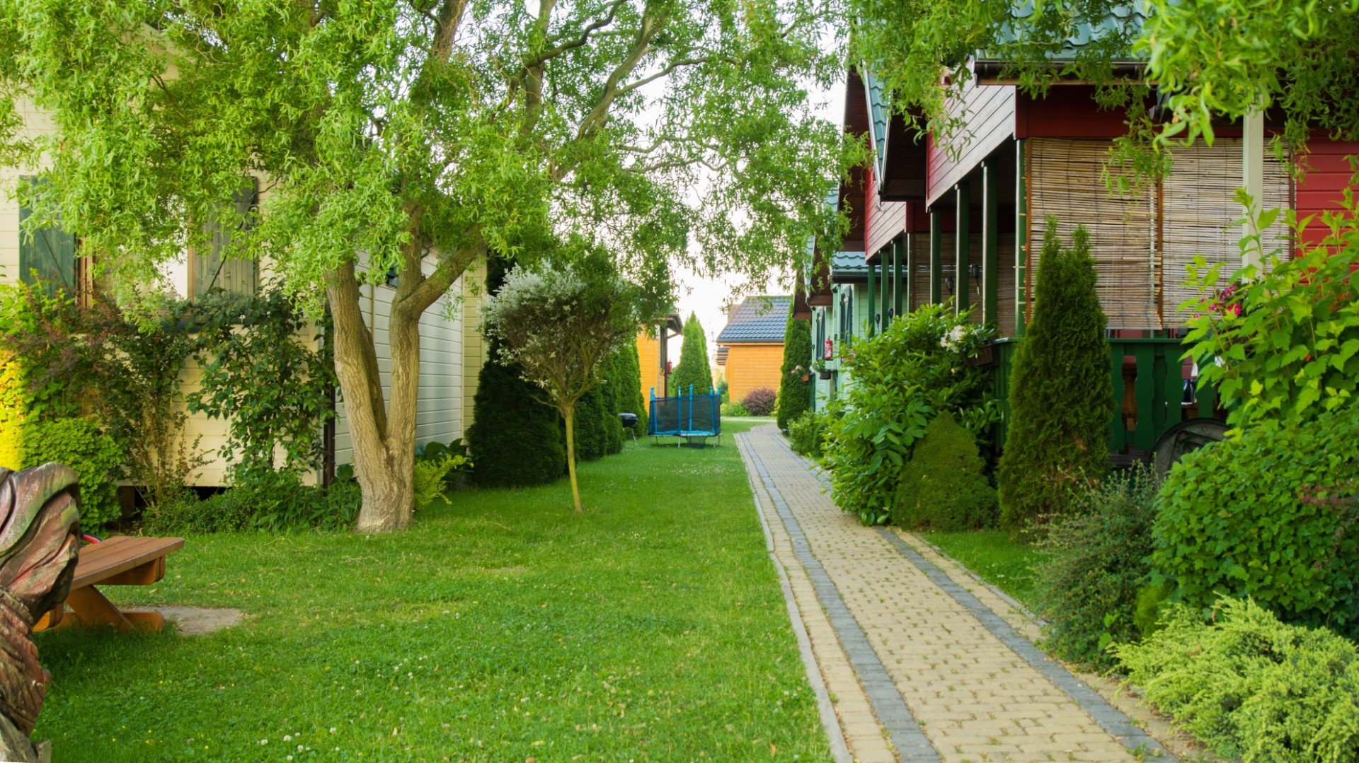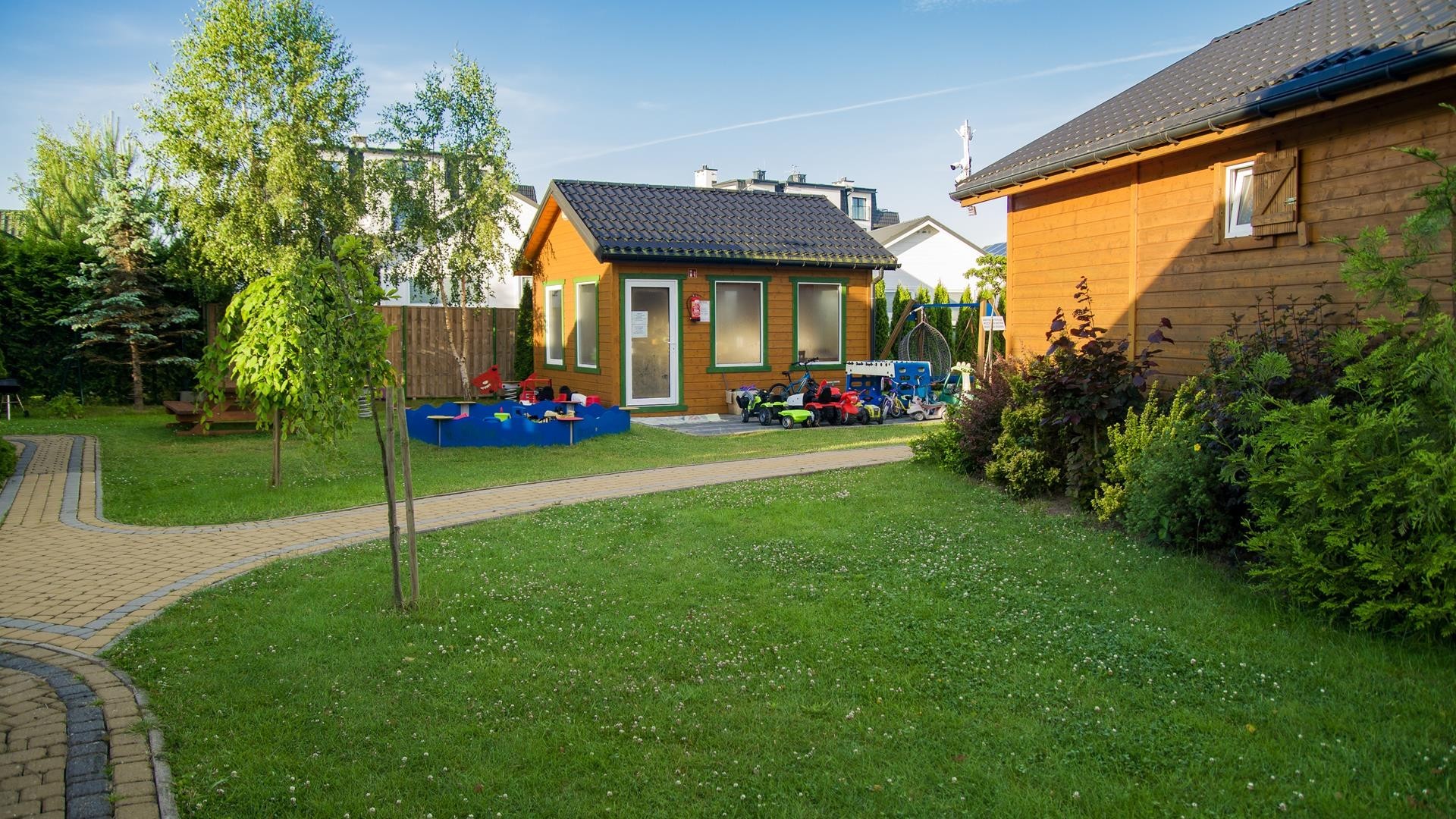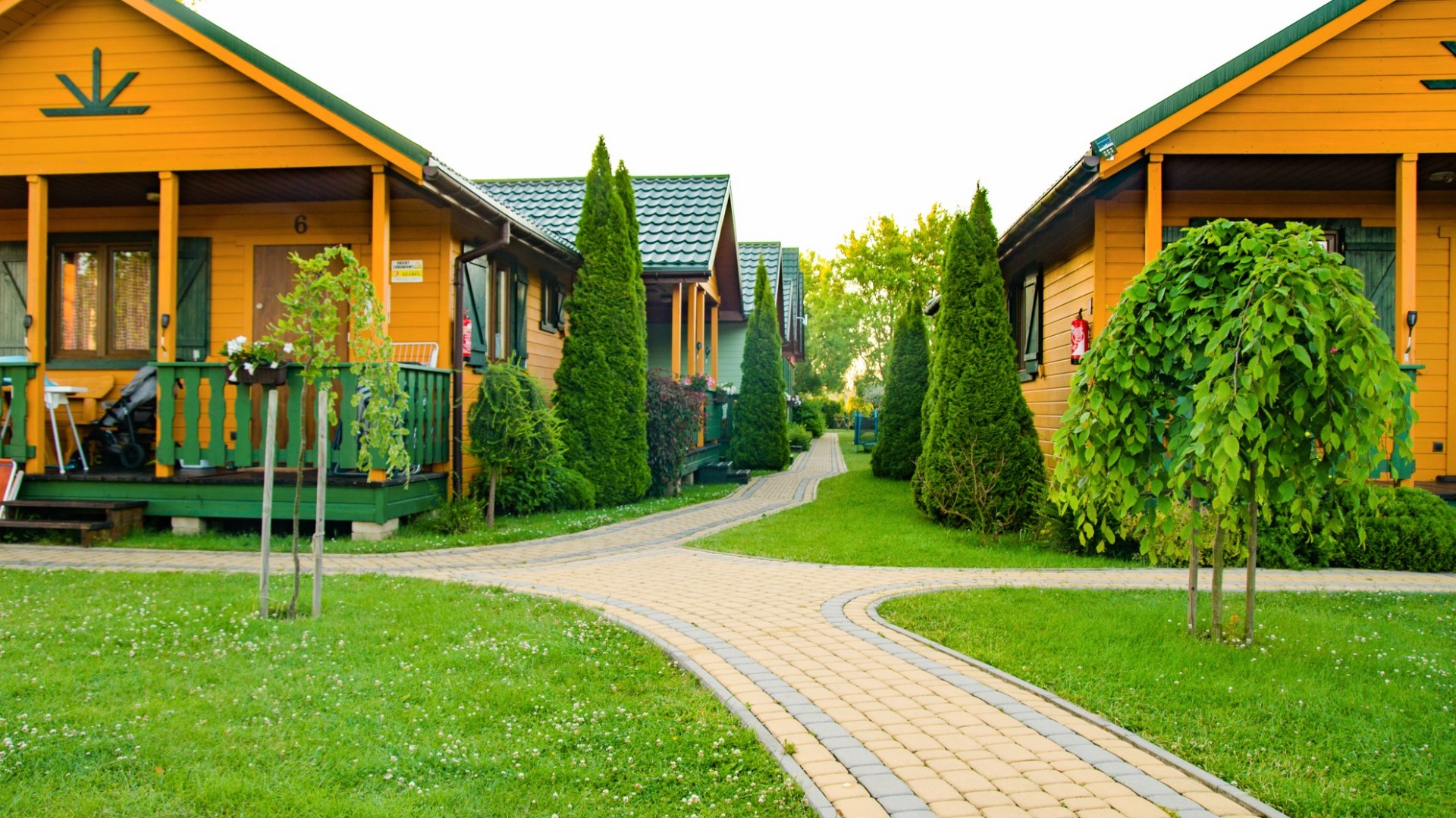 Domki położne są w spokojnej części Sarbinowa, w otoczeniu kwiatów i zieleni.