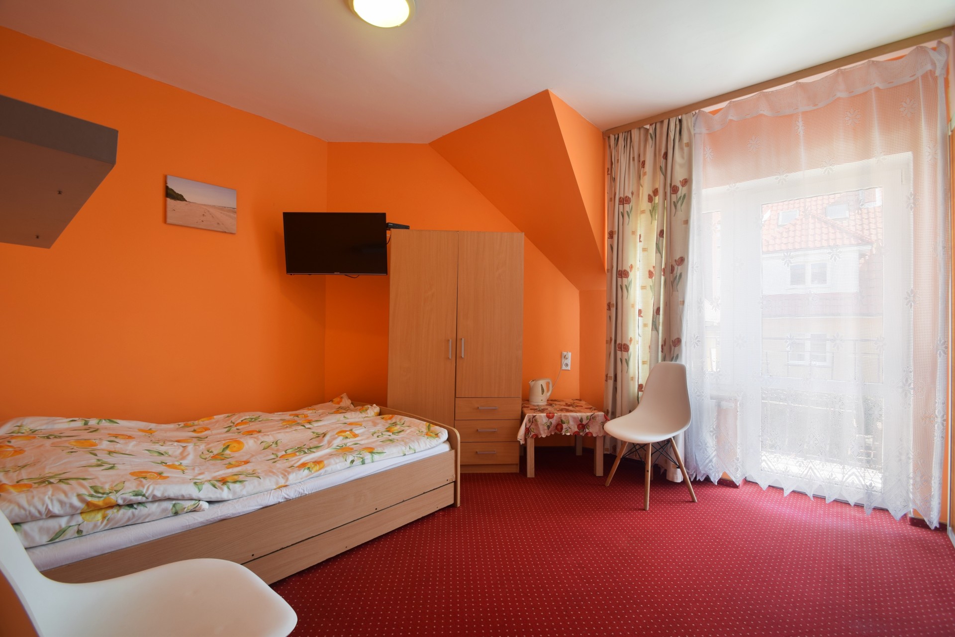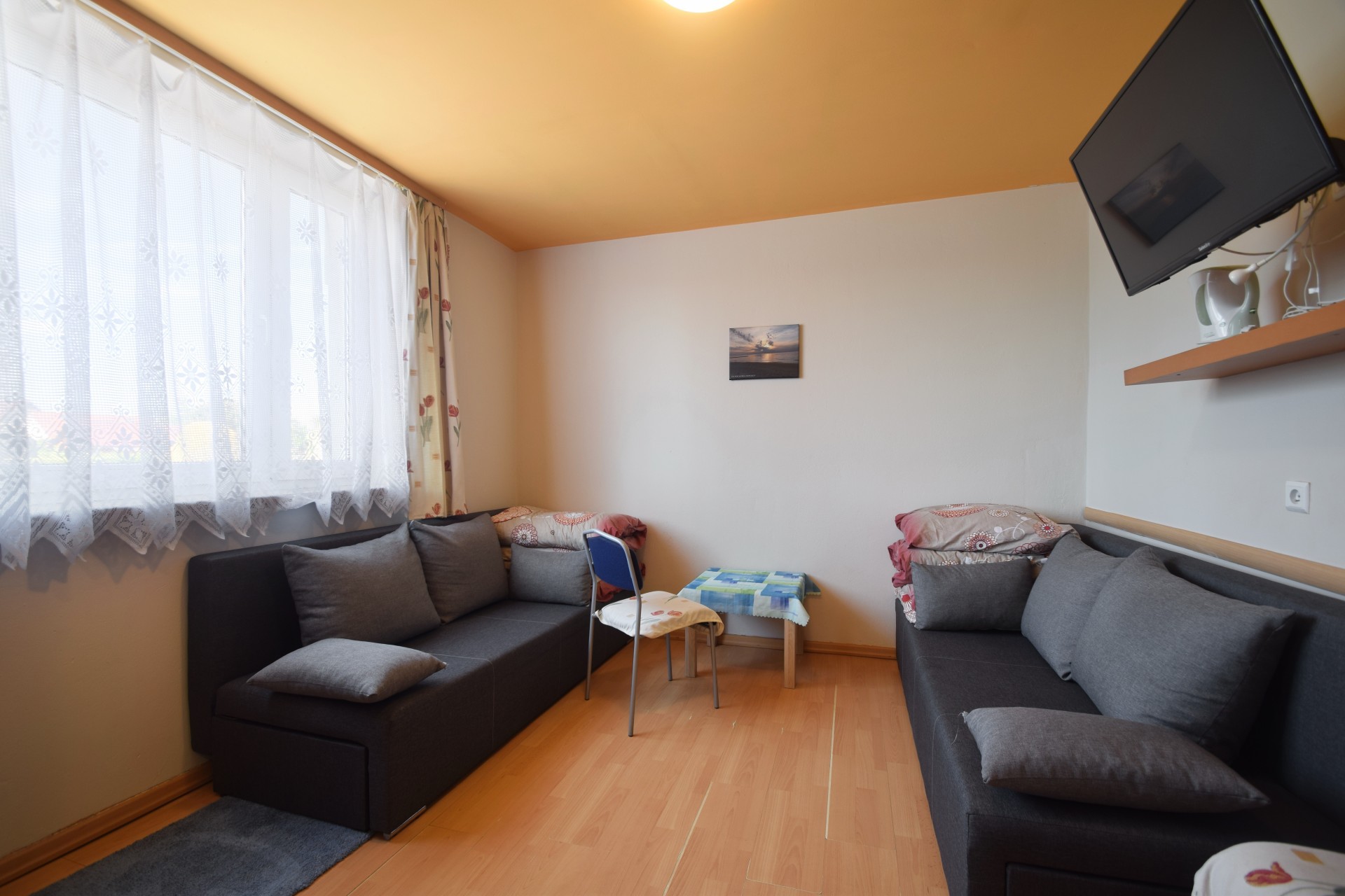 Każdy pokój wyposażony jest w telewizor, czajnik oraz sprzęt plażowy.