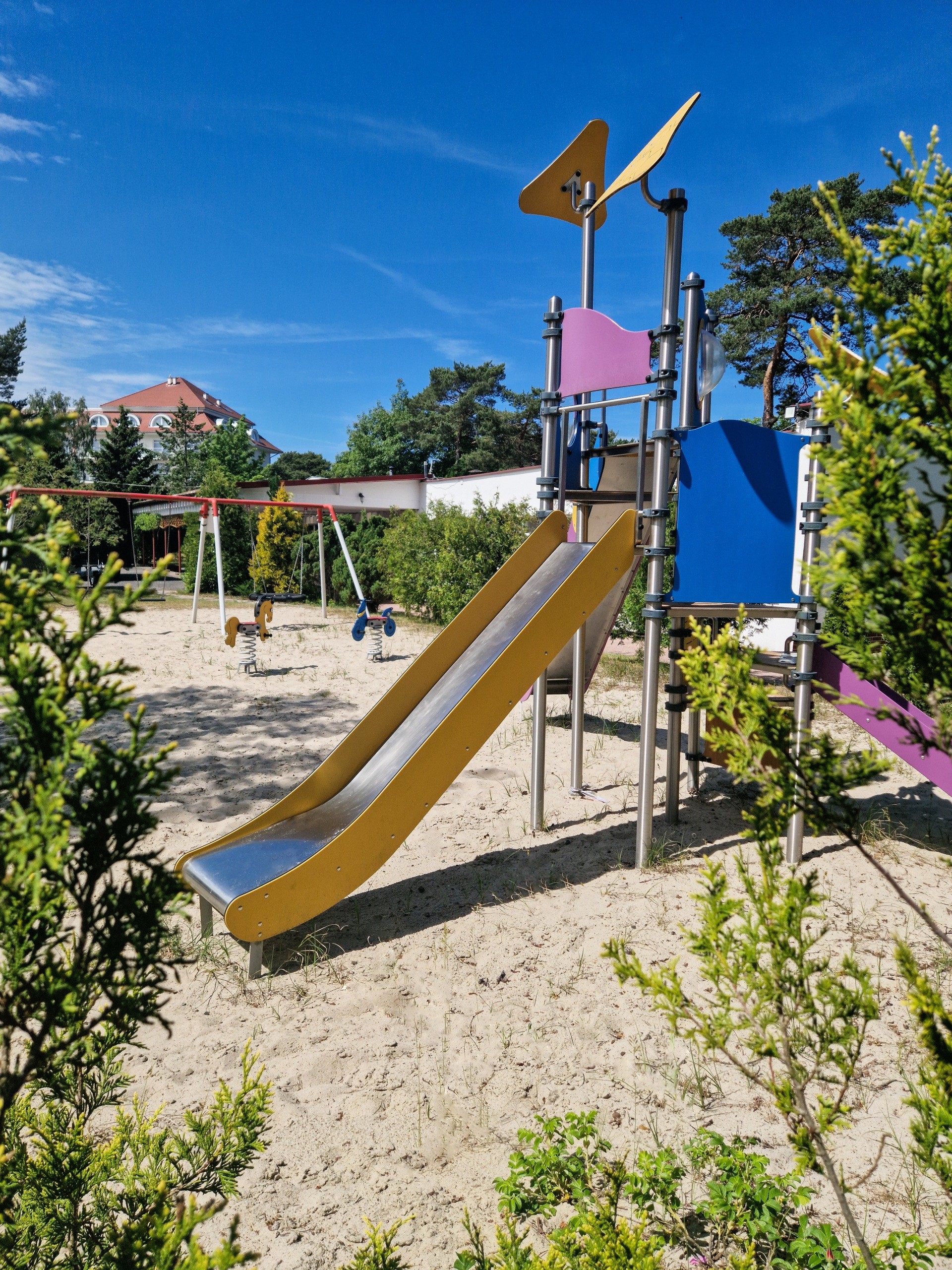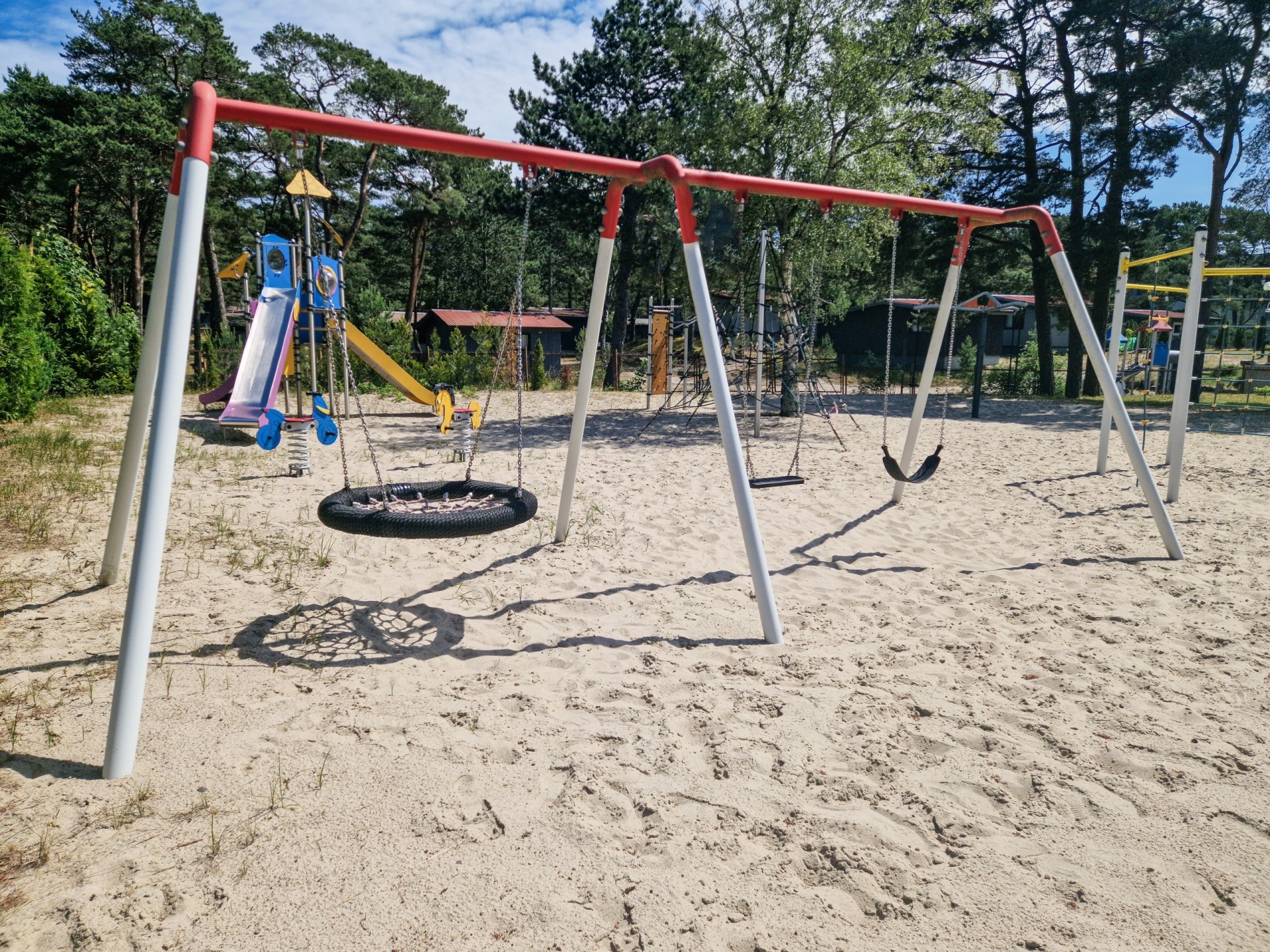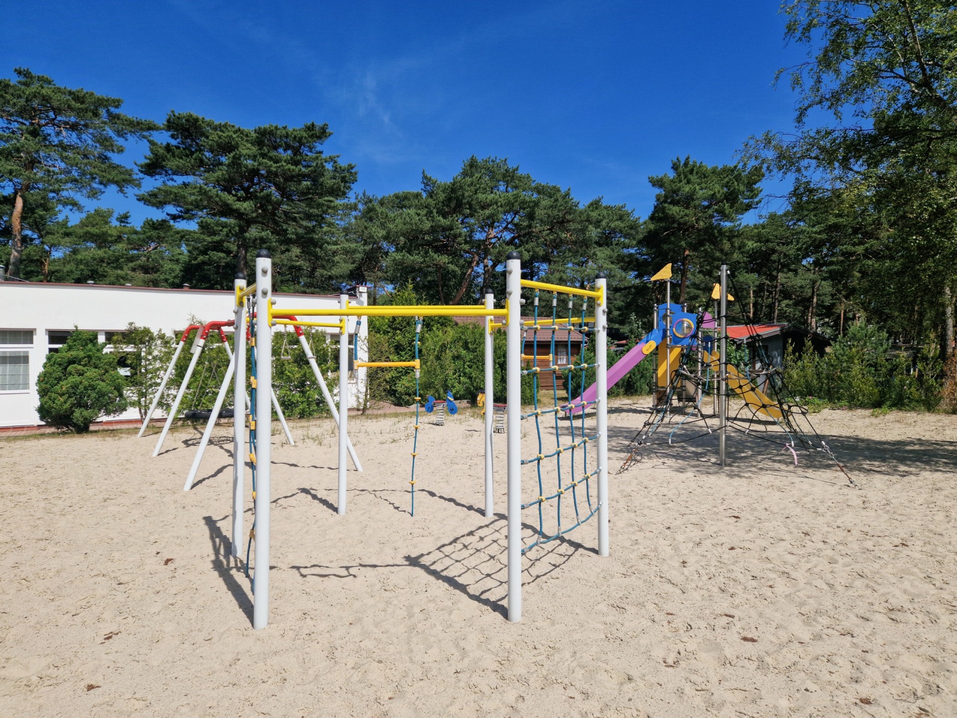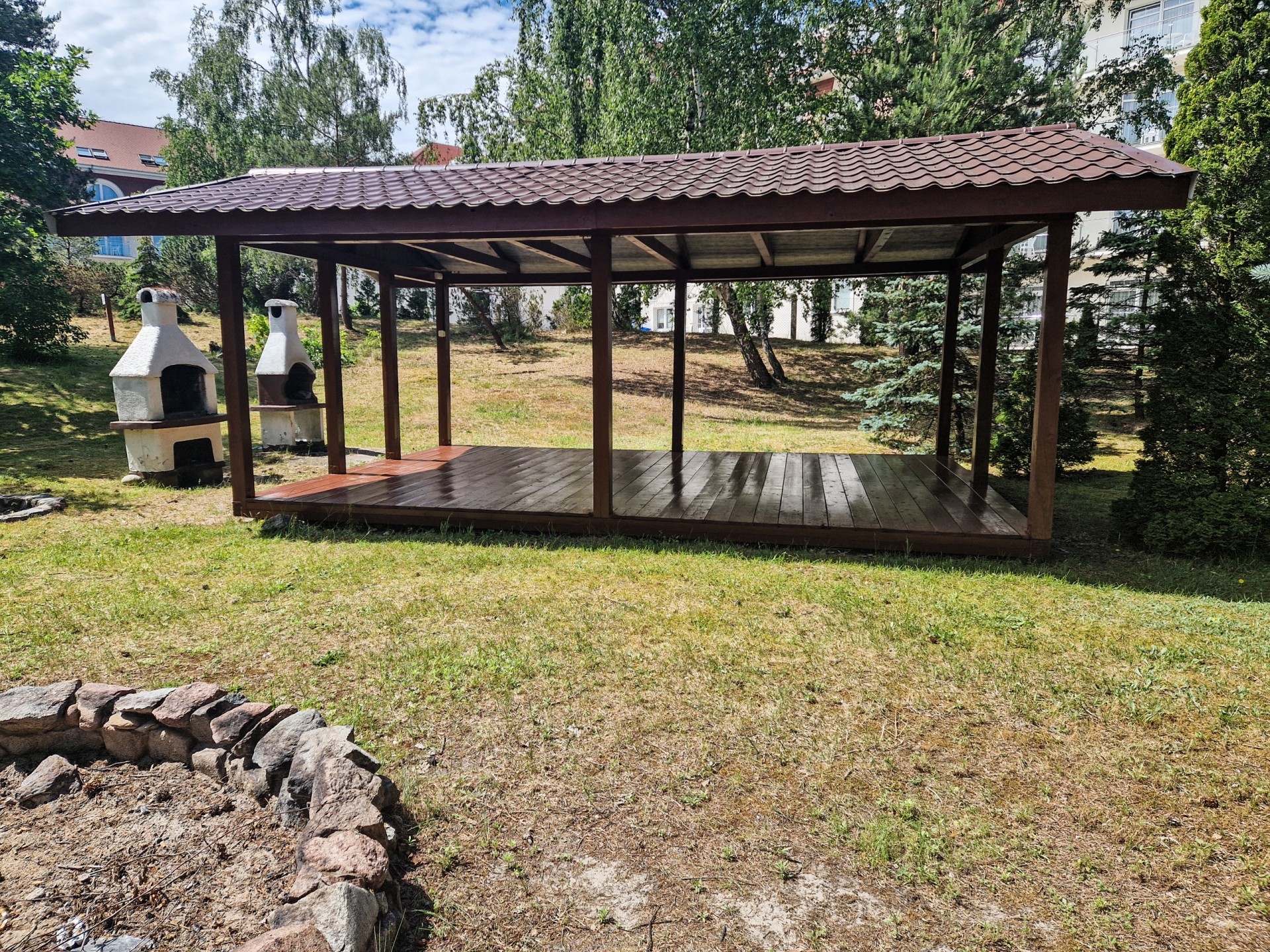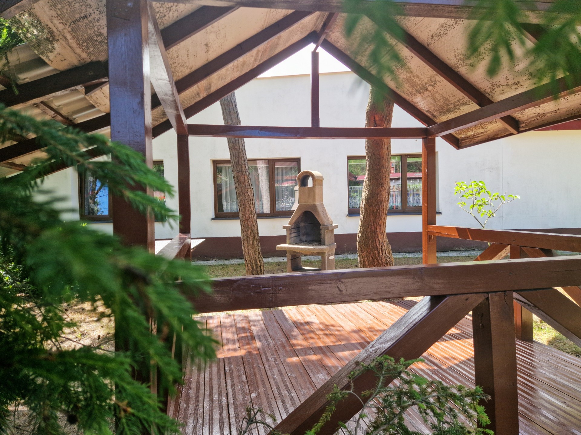 Nasz obiekt posiada duży teren – ok. 2 ha, jest ogrodzony z bezpiecznym parkingiem. Dla aktywnych proponujemy wiele atrakcji: kosz do koszykówki, wypożyczalnię kijków do Nordic Walking, stół do ping-ponga. Dzieciom proponujemy kącik zabaw z książkami i malowankami, a także profesjonalny plac zabaw (nie tylko dla najmłodszych dzieci) z trampoliną.