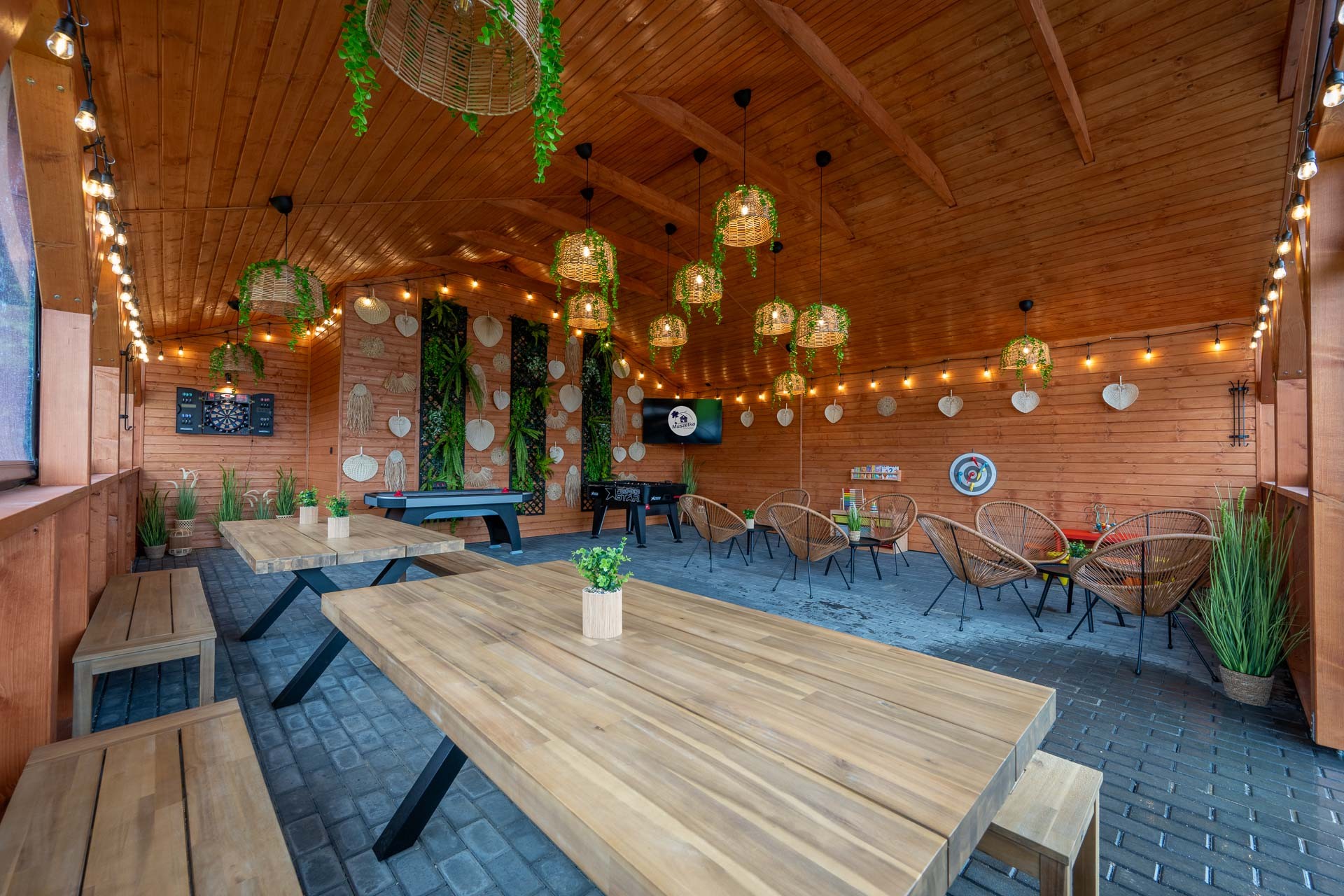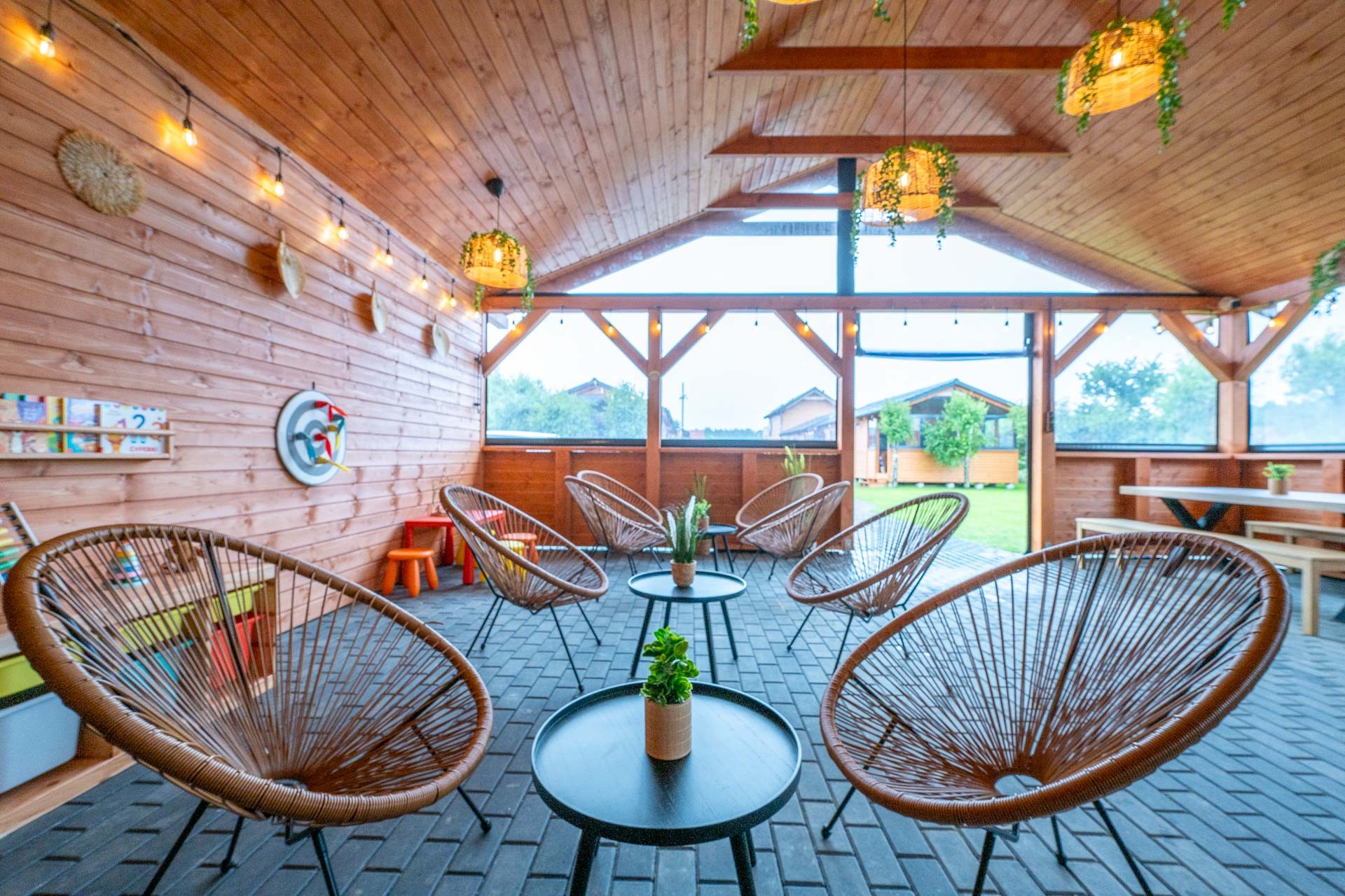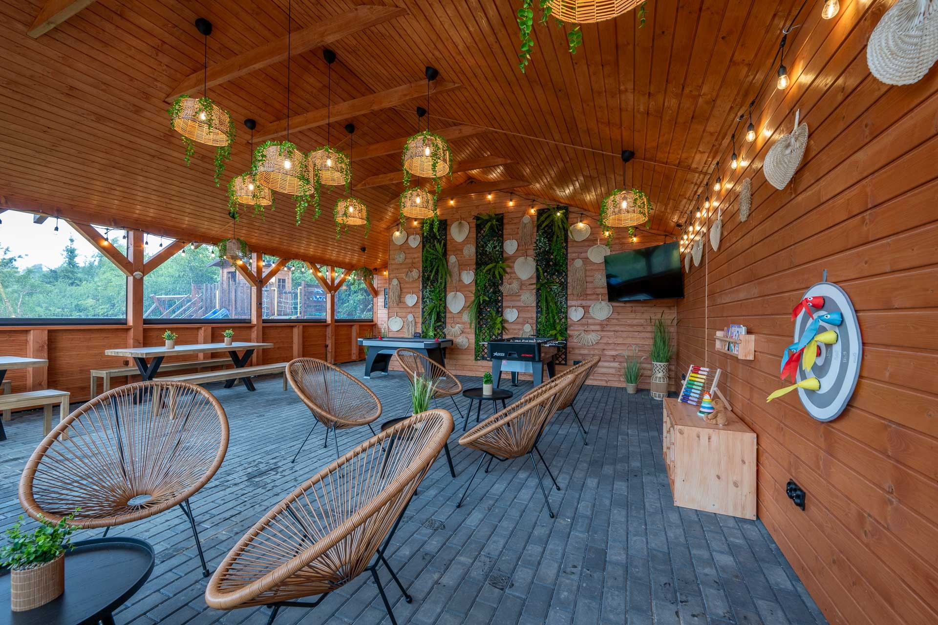 Nowość! Dobrze wiemy, że nasz piękny Bałtyk nie zawsze rozpieszcza nas pogodą, dlatego w 2024 roku w naszych głowach urodził się pomysł na stworzenie miejsca, w którym można spędzać nie tylko pogodne, ale i te deszczowe dni. Coś dla małych, dla większych i dla tych zupełnie dużych! Świetlica wyposażona w stół do gry w piłkarzyki, cymbergaja, tarczę do gry w darta w wersji dla dorosłych i dla dzieci. Duży TV, oraz kącik dla najmłodszych dzieci, a tam gry i zabawki. Usytuowana przy placu zabaw. Idealnie sprawdzi się także jako miejsce na integrację!