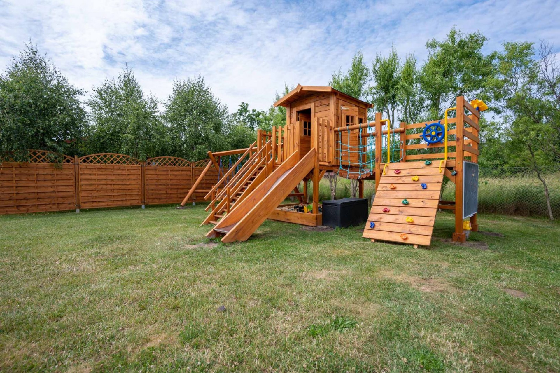 Każdy z domków posiada telewizor z telewizją naziemną. Na zewnątrz mnóstwo atrakcji znajdą także najmłodsi. Któż z nas będąc dzieckiem nie marzył o własnym drewnianym domku, z którego można stworzyć twierdzę? Lub wczuć się w rolę żeglarza wypatrując piratów. Dzieciaki mają tutaj taką możliwość! Duży plac zabaw wyposażony w domek, zjeżdżalnie, wspinaczki, huśtawki, piaskownicę i wiele innych… Dzieciaki pozostając pod okiem rodziców mogą się bezpiecznie bawić, ponieważ teren jest ogrodzony i monitorowany.