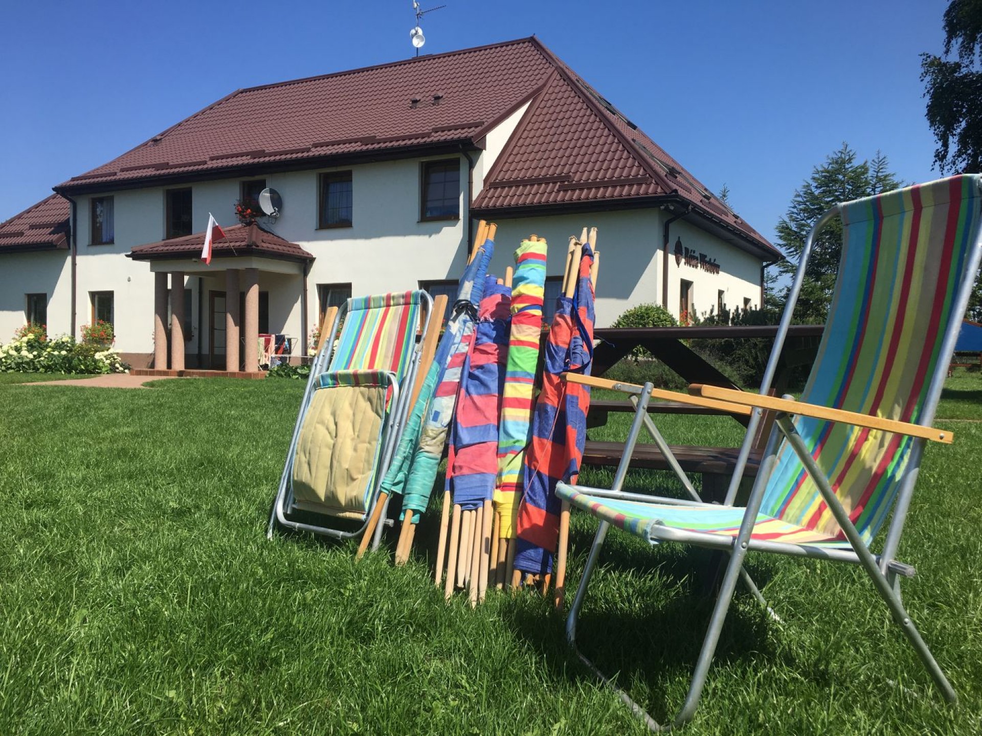 Do dyspozycji gości są altanki,grille,wędzarnia oraz sprzęt plażowy,leżaki ogodowe.