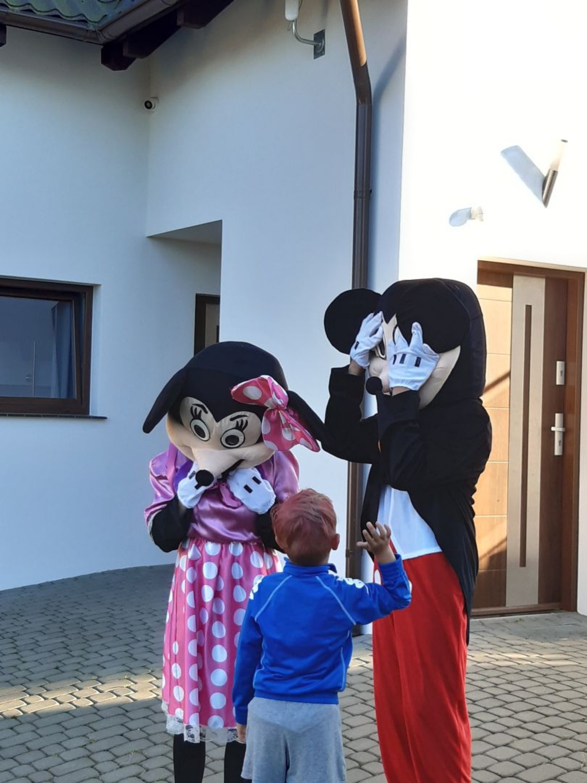- odwiedzają nas postacie z bajek: Minionek, Myszka Miki i Mini, Kaczor Donald,