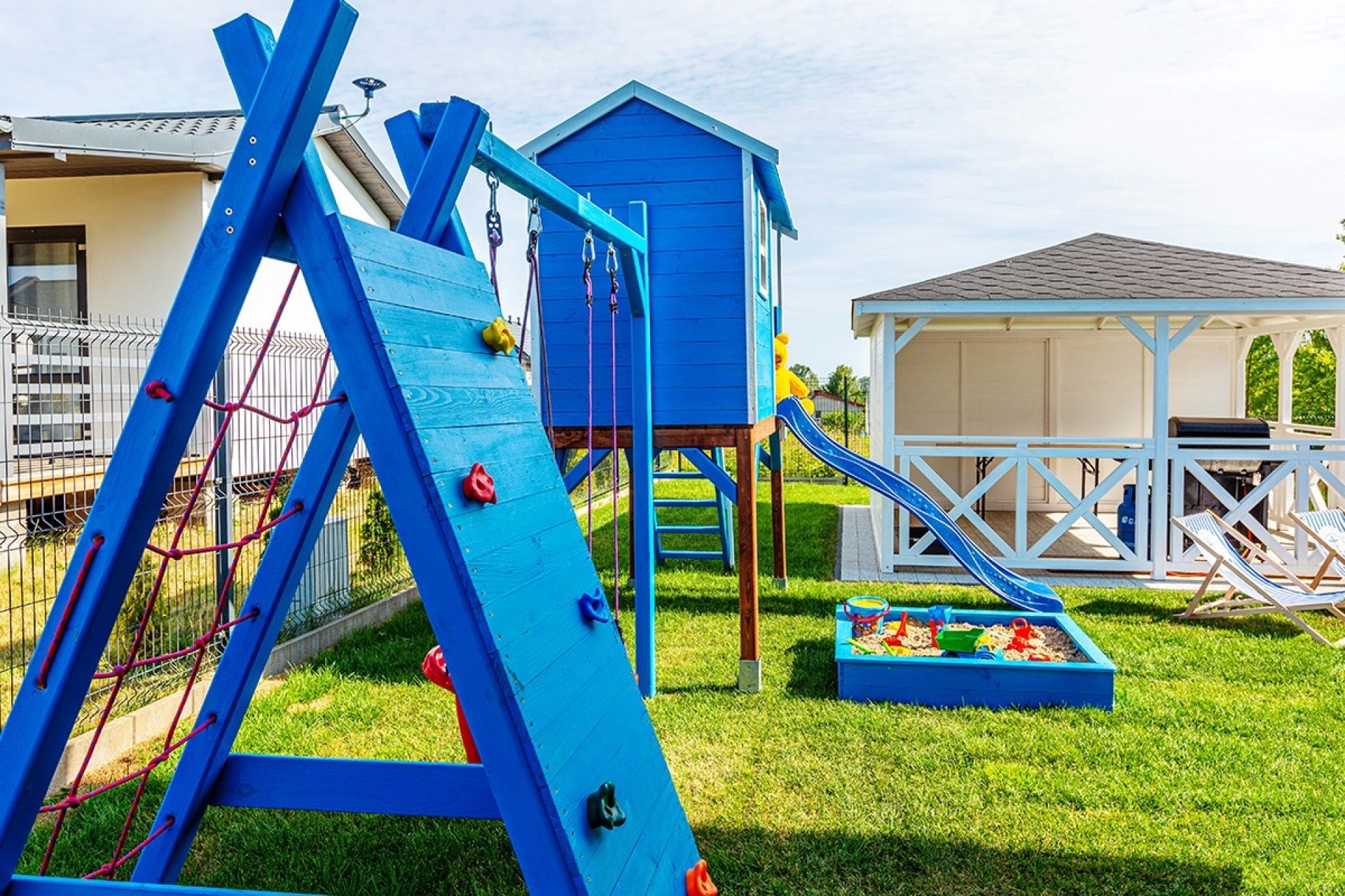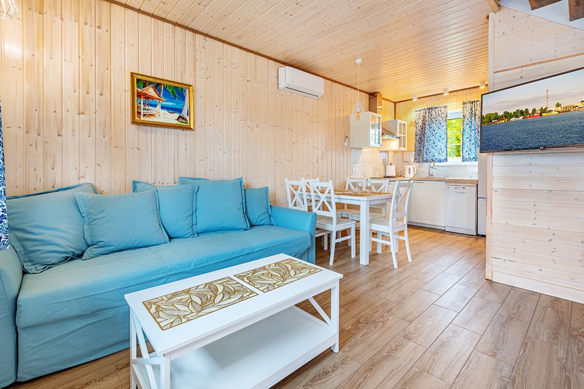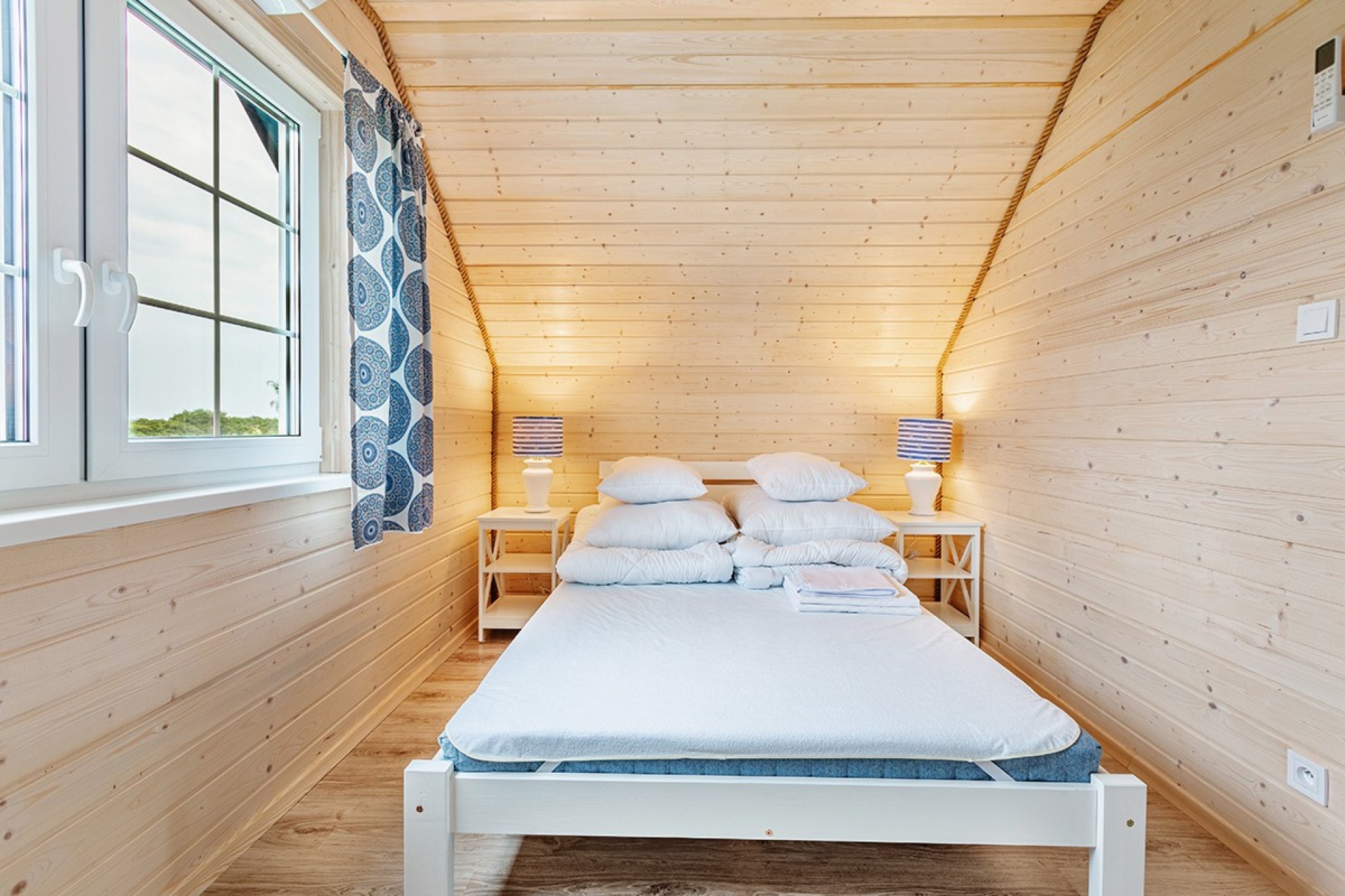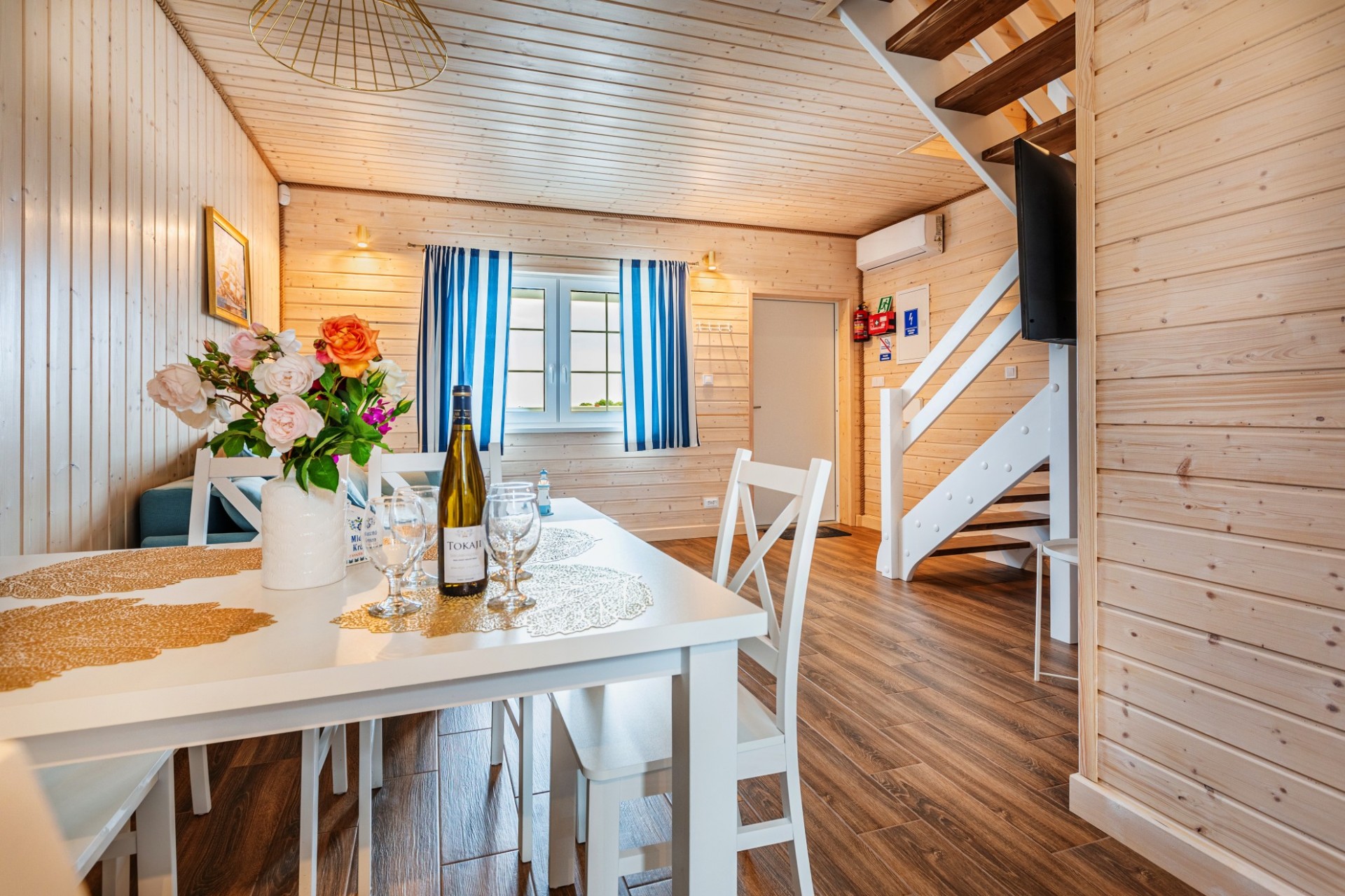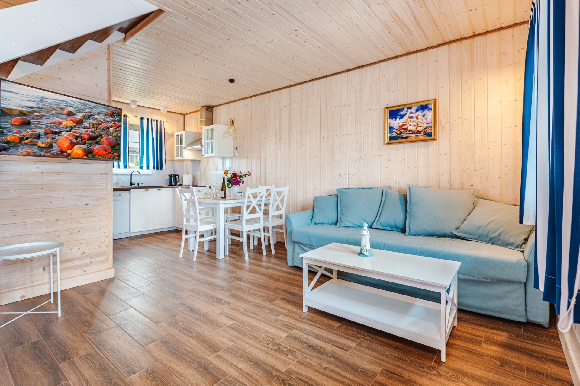 Każdy domek ma swoją nazwę: ZATOKA, FREGATA, LATARNIA, PLAŻA, WYSPA.