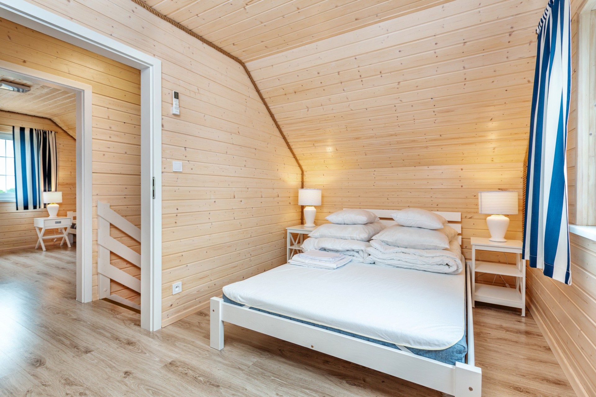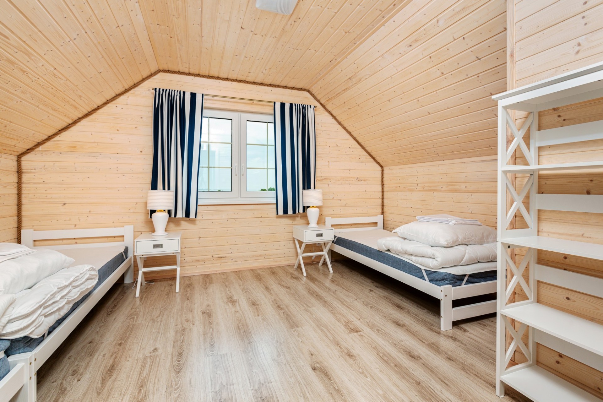 Na piętro prowadzą schody do dwóch niezależnych sypialni.