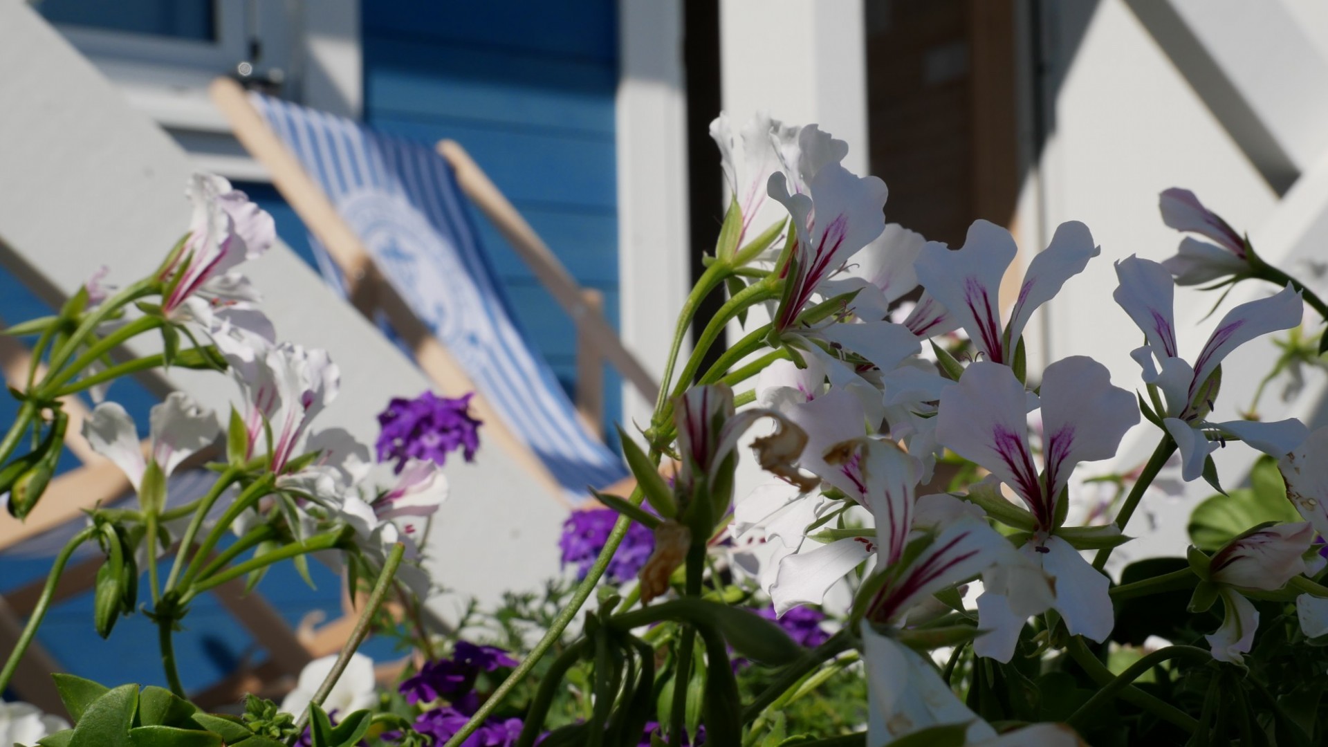 Składa się z salonu z aneksem kuchennym, sypialnią, łazienką, balkonem. Do dyspozycji gości: leżaki i parawan.
